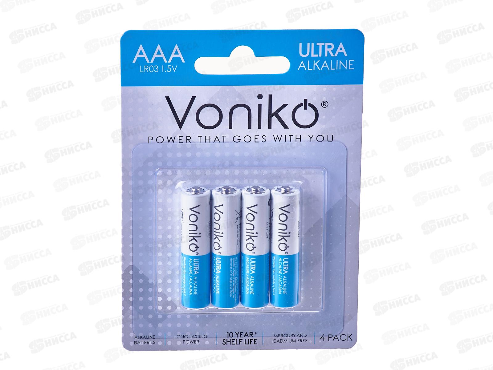 Код:525667; Батарейка VONIKO алкалиновая батарейка LR03 ААА, 4шт на блистере *4/120/960