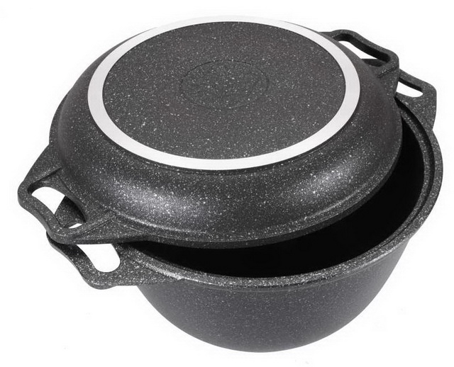 Код:242369; Казан с крышкой-сковородой 3,0л темный мрамор *кмт34а *3