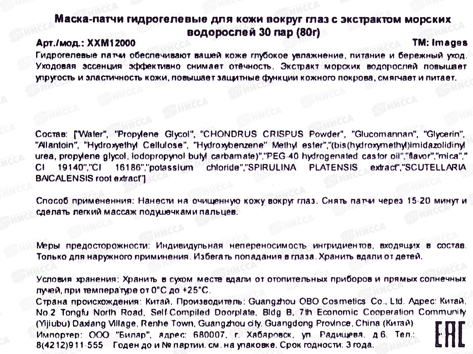 Тип товара: Патчи для глаз