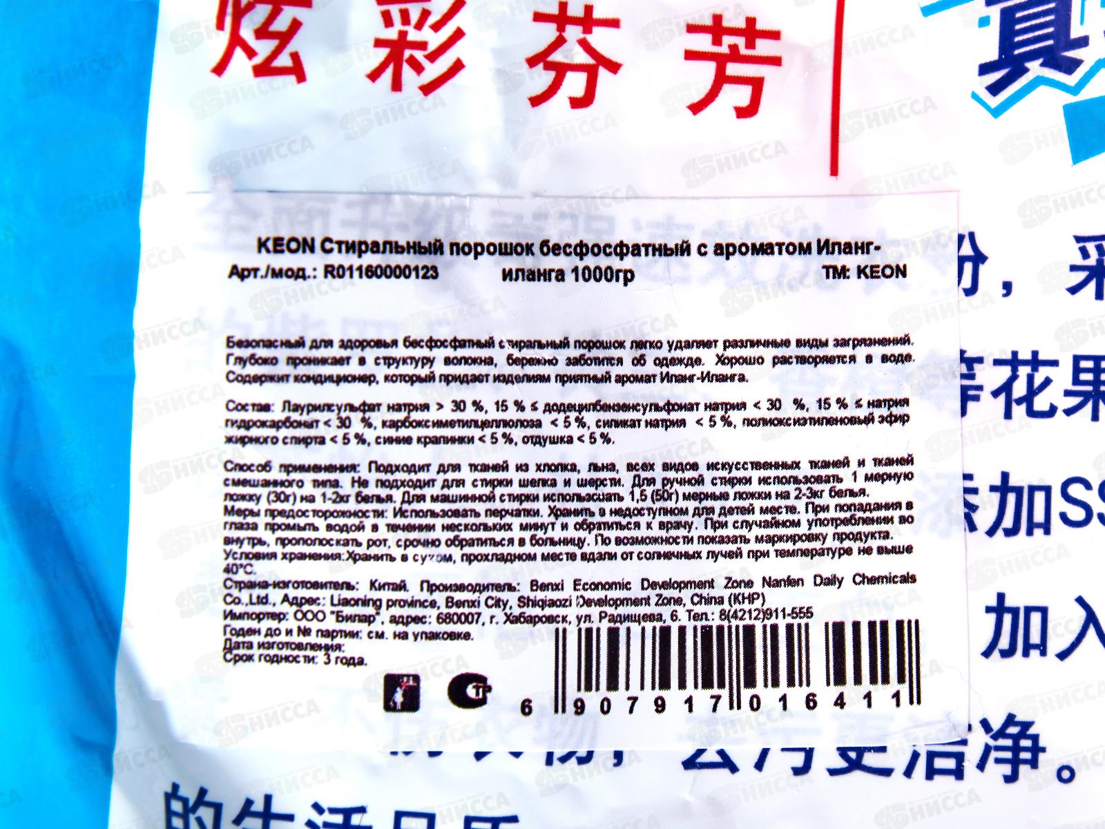 Keon порошок для стирки 1,0кг Безфосфатный мягкой упаковке *8