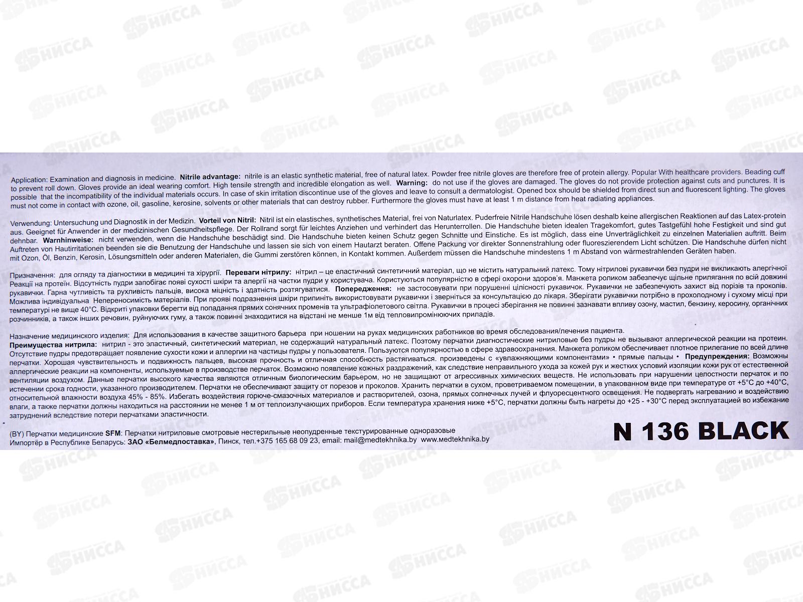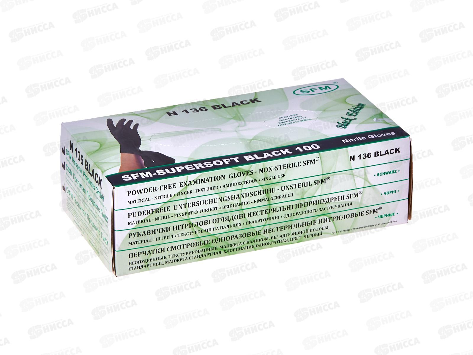 Перчатки нитриловые SFM SUPERSOFT L нестерильные, неопудренные,текстур черные *100