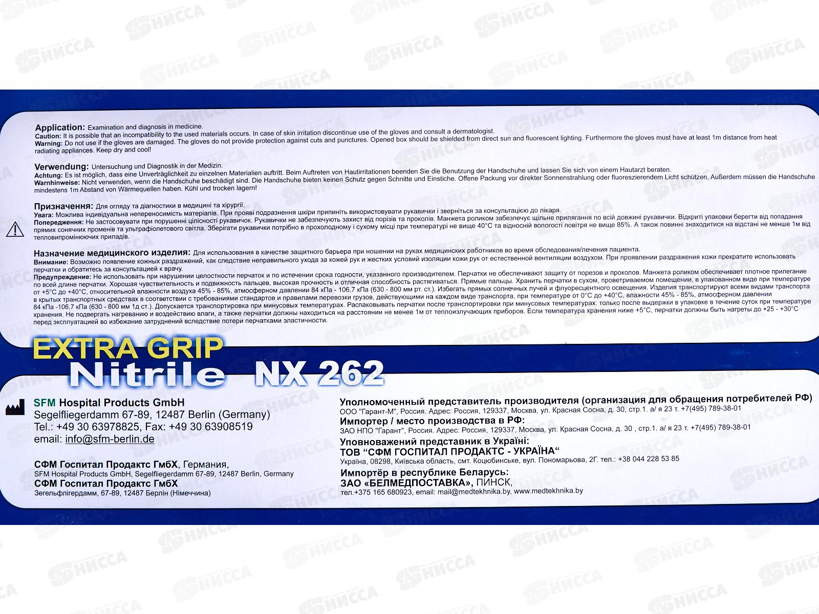 Перчатки нитриловые SFM EXTRA GRIP M н/стер, н/опудр,текст син*50