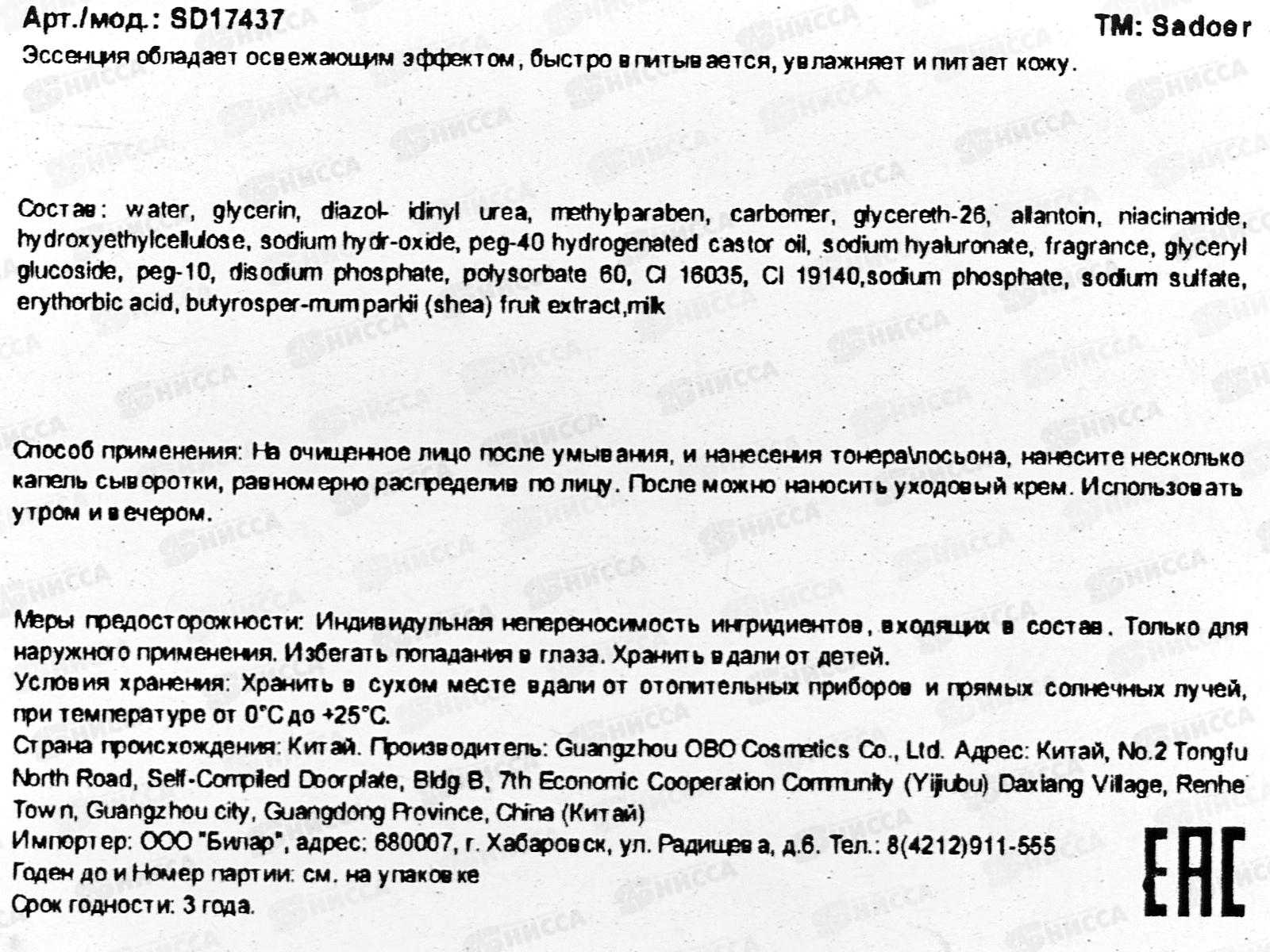 OBO Sadoer Сыворотка для лица Увлаж Авокадо 30мл пипетка *144