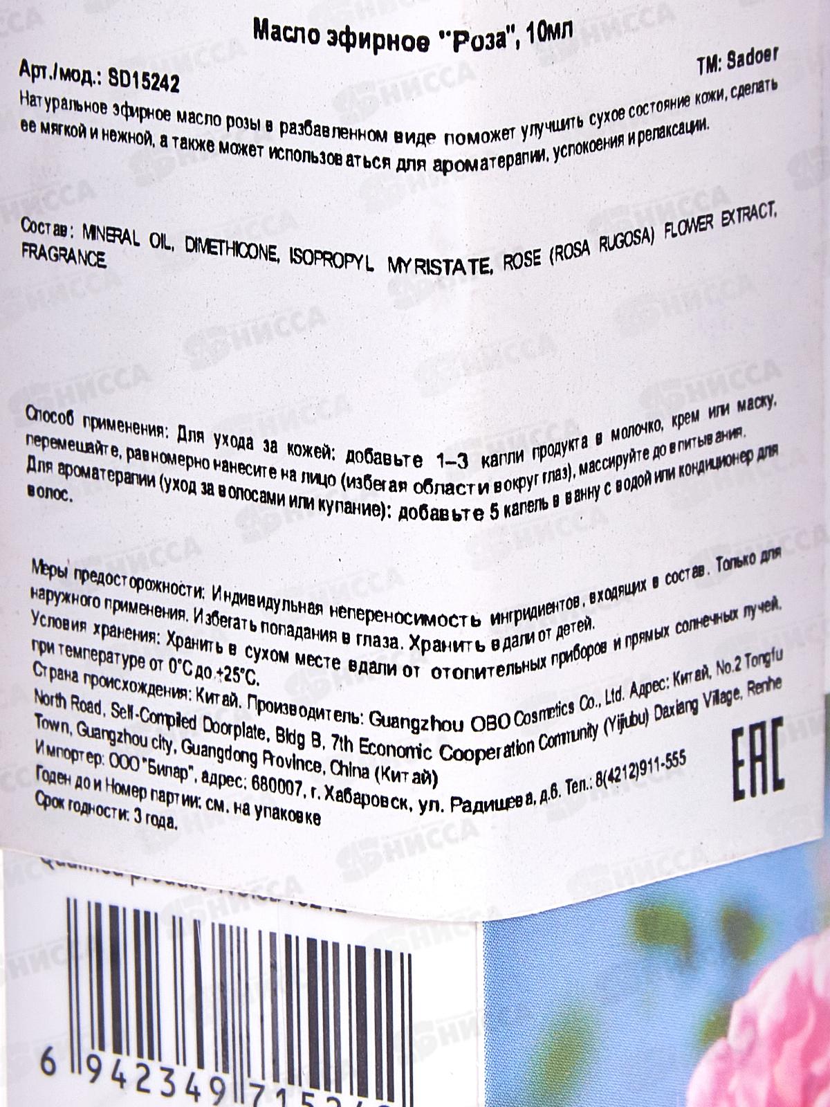 Sadoer аромамасло смягч для лица тела волос 10мл Роза