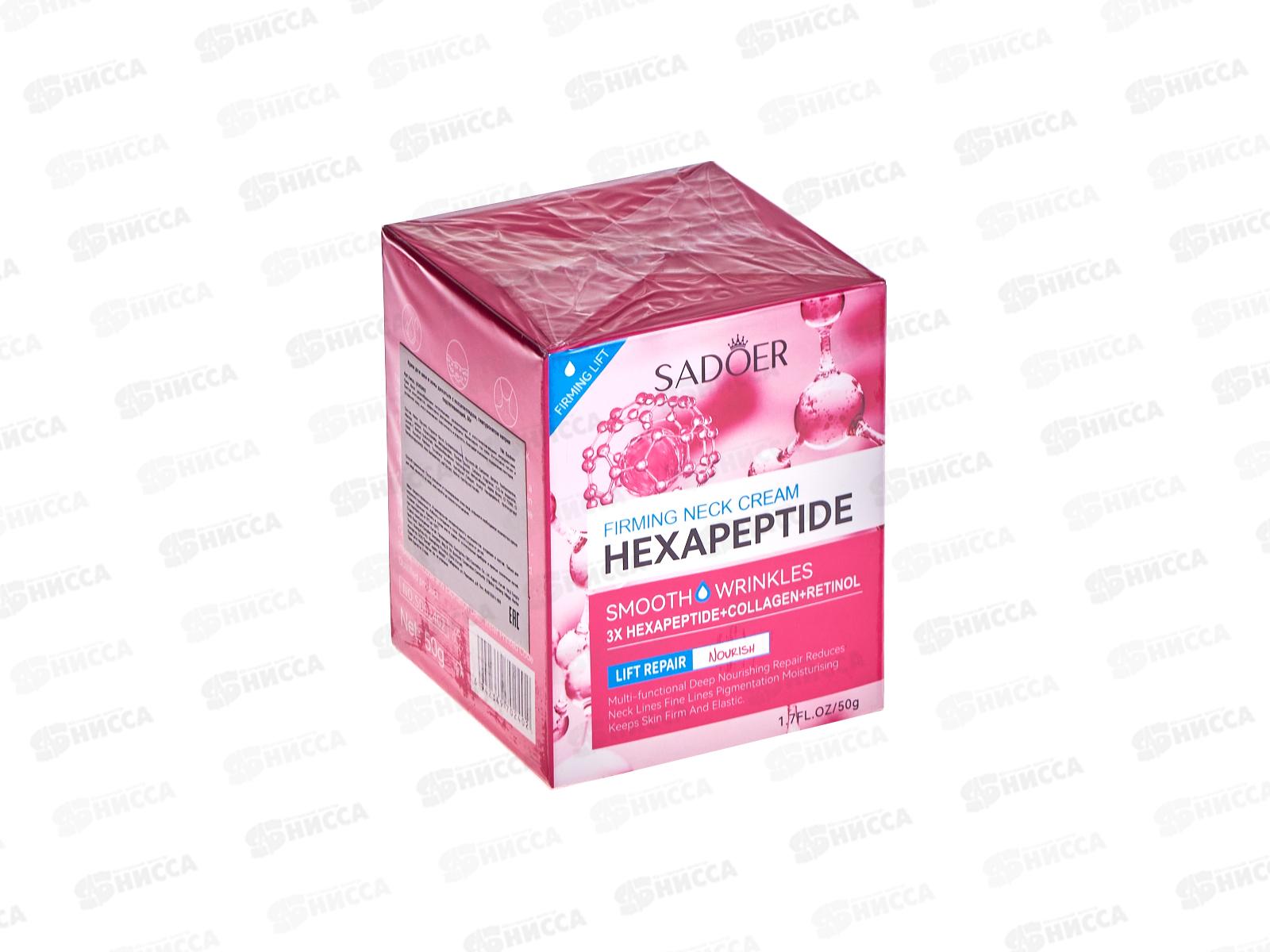 Укрепляющий крем для шеи Sadoer с пептидами 50 гр. Формула крема тщательно разработана для обеспечения глубокого ухода и видимого лифтинг-эффекта. В состав входят высококонцентрированные пептиды, которые проникают в глубокие слои кожи, обеспечивая многоступенчатый эффект регенерации. Состав: Water, Glycerin, Propylene Glycol, Cyclopentasiloxane, Glycereth-26, Carbomer, Betaine, Triethanolamine, Allantoin, Lactose, Polyacrylamide, Methylparaben, Titanium Dioxide, Cellulose, Fragrance, C13-14 Isoparaffin, Laureth-7, Sodium Hyaluronate, Methylisothiazolinone, Hydroxypropyl Methylcellulose, Jojoba Esters, CI 73360, CI 15985, Ascorbyl Palmitate, Tocopheryl Acetate, Hydrolyzed Collagen, Acetyl Hexapeptide-8, Hydroxypropyl Tetrahydropyrantriol, Aloe Barbadensis Leaf Extract, Retinol, Hydrolyzed Keratin.