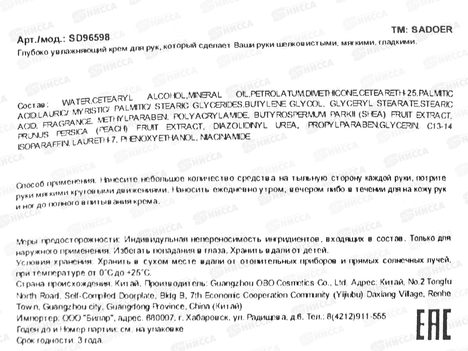 OBO Sadoer крем для рук Avocado омолаживающий 30гр дой-пак *1