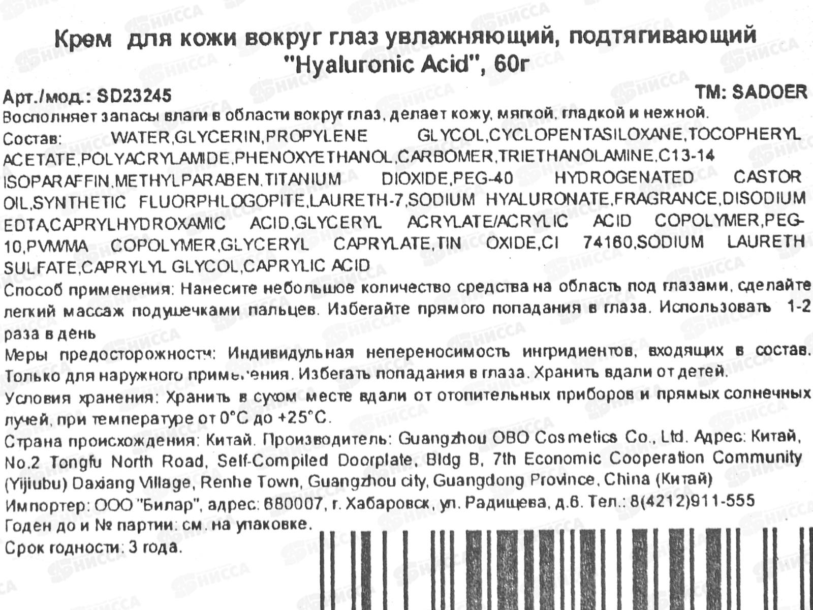 OBO Sadoer Hyaluronic Acid крем для век 60гр подт увлаж *144