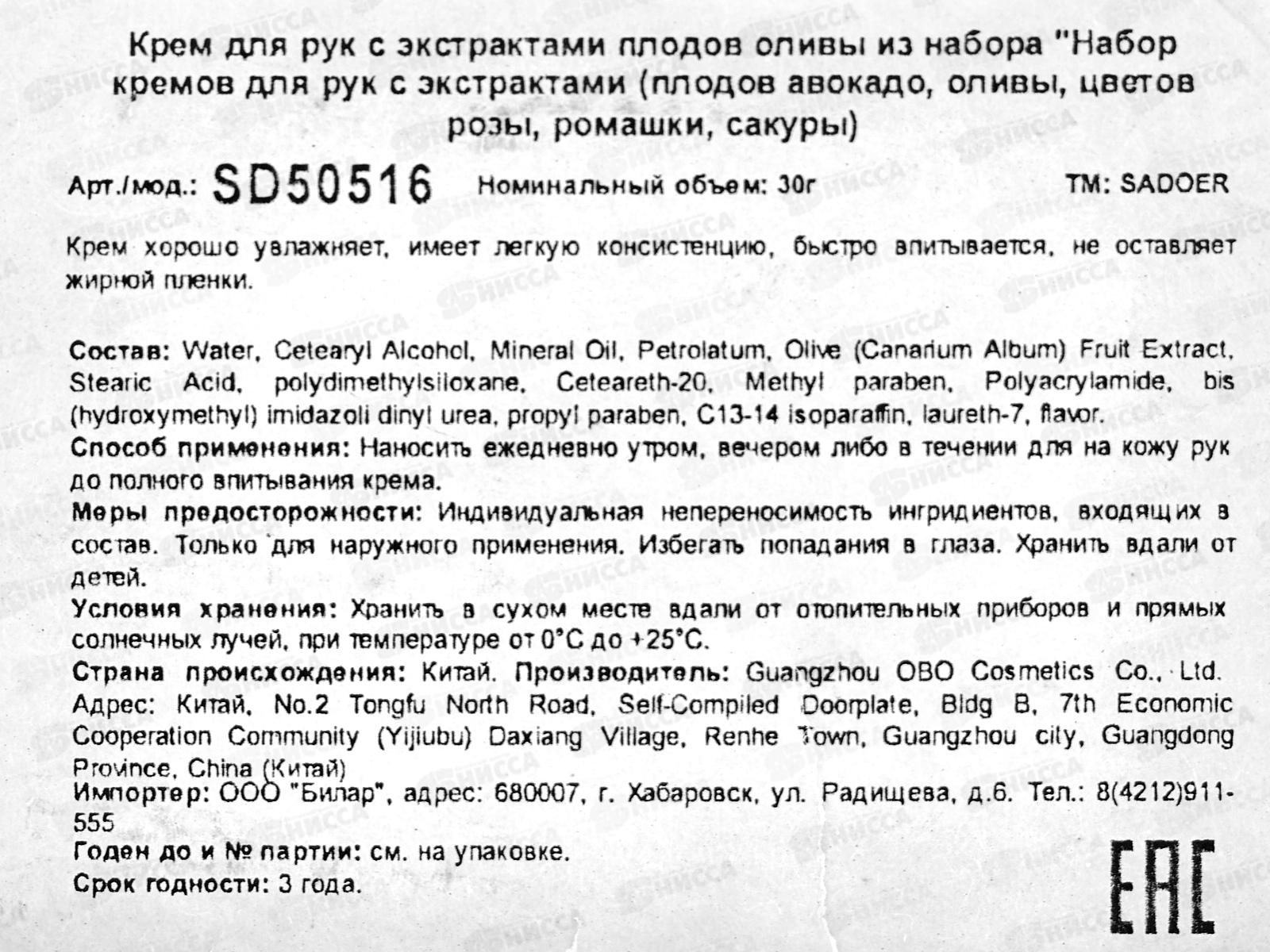 OBO Sadoer Крем для рук Экстракт оливы 30г увлажняющий *1/384
