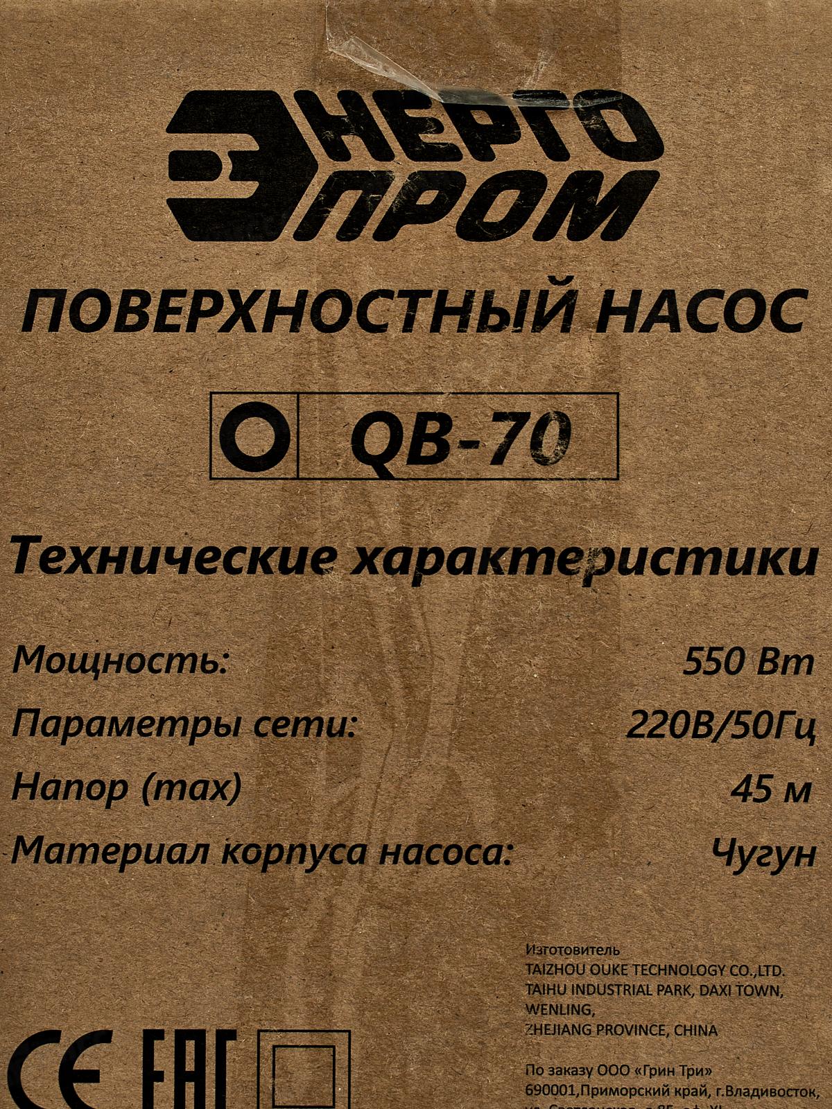 Насос поверхностный 450Вт ЭНЕРГОПРОМ QB-70 (оранжевое кольцо) *4