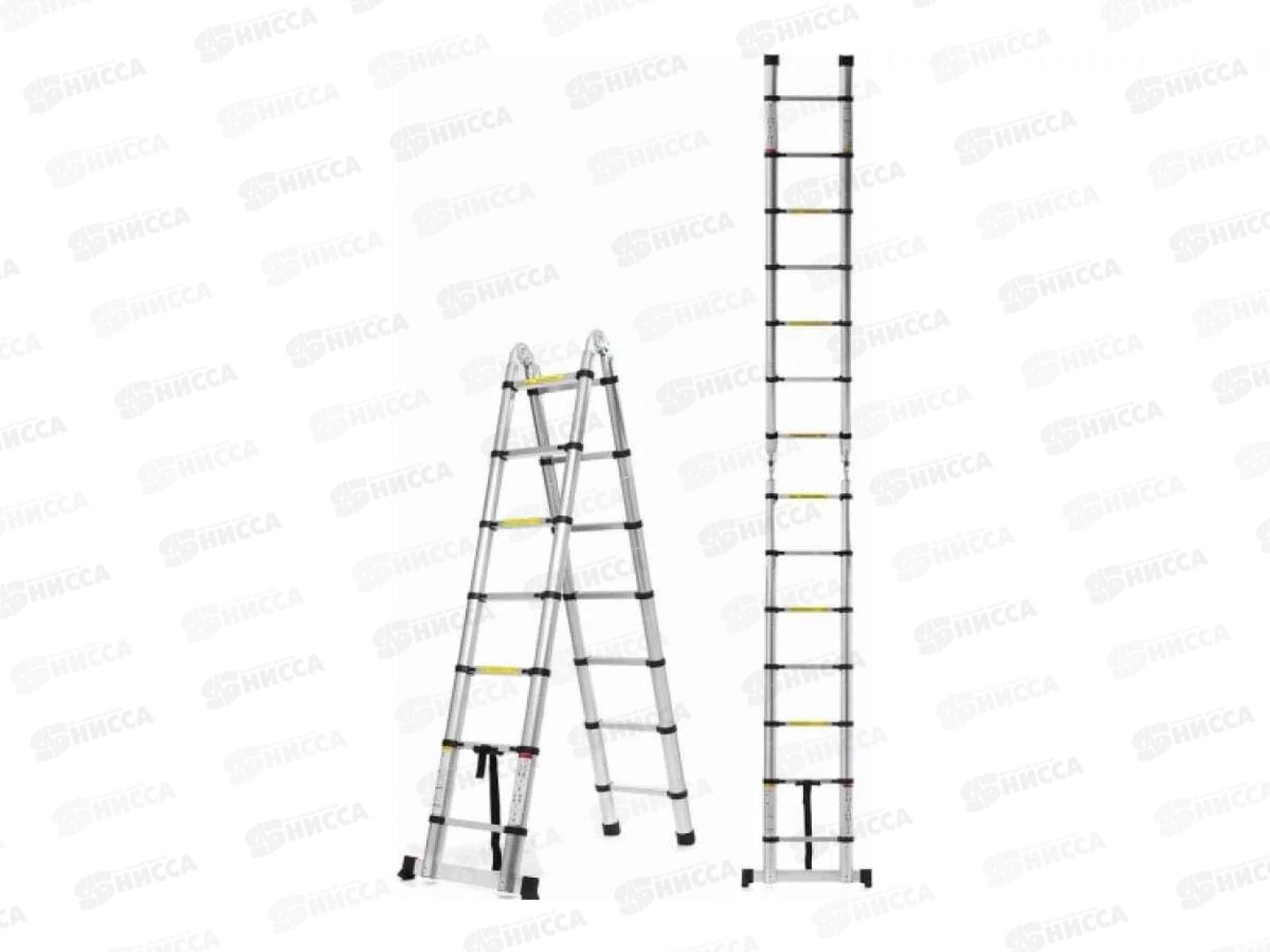 Код:565669; Лестница телескопическая многофункциональная Техпром 4,2 метра SW-T3044 (красный квадрат)