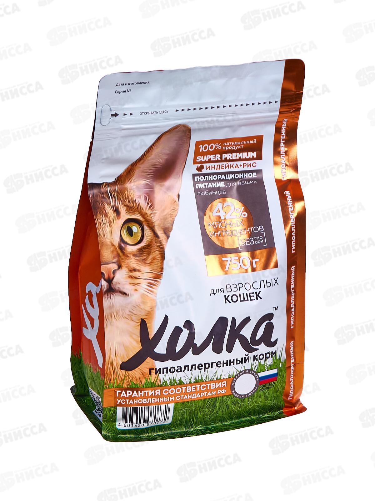 Корм полнорационный экструдированный "Холка" для взрослых Кошек из Индейки и риса 750г
