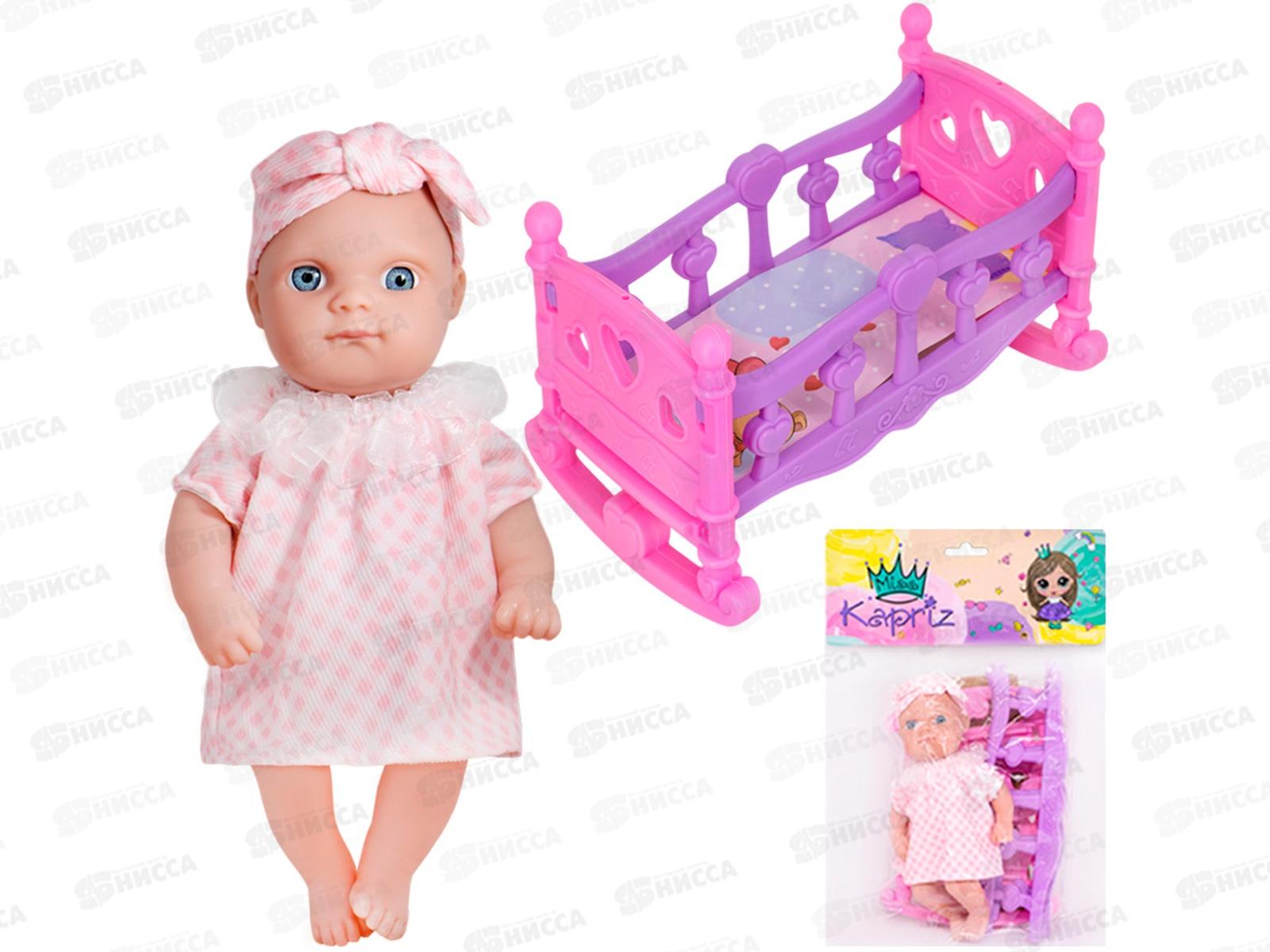 Код:577940; Пупс Miss Kapriz МК2408К-А 21см с кроваткой, FCJ1255246 в пакете