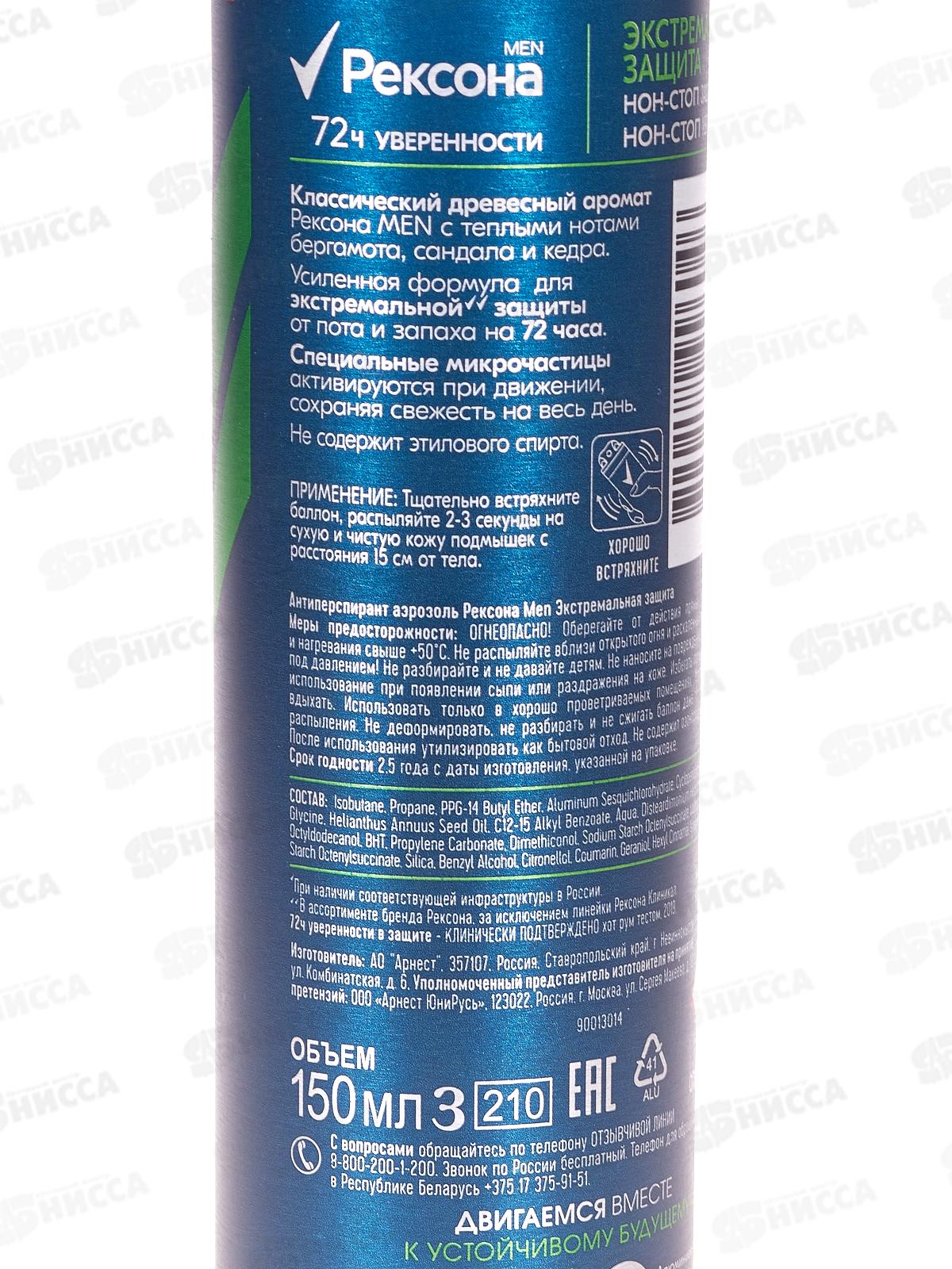 РЕКСОНА дезодорант спрей 150мл MEN Экстримальная защита *6