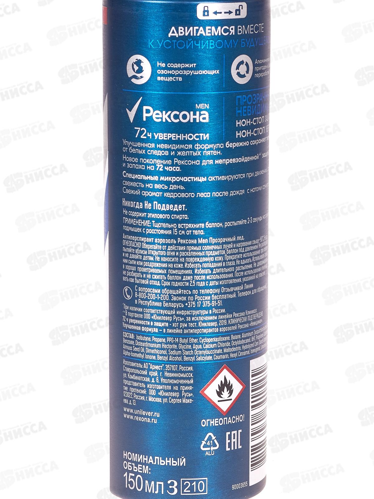 РЕКСОНА дезодорант спрей 150мл MEN Прозрачный Лед *6