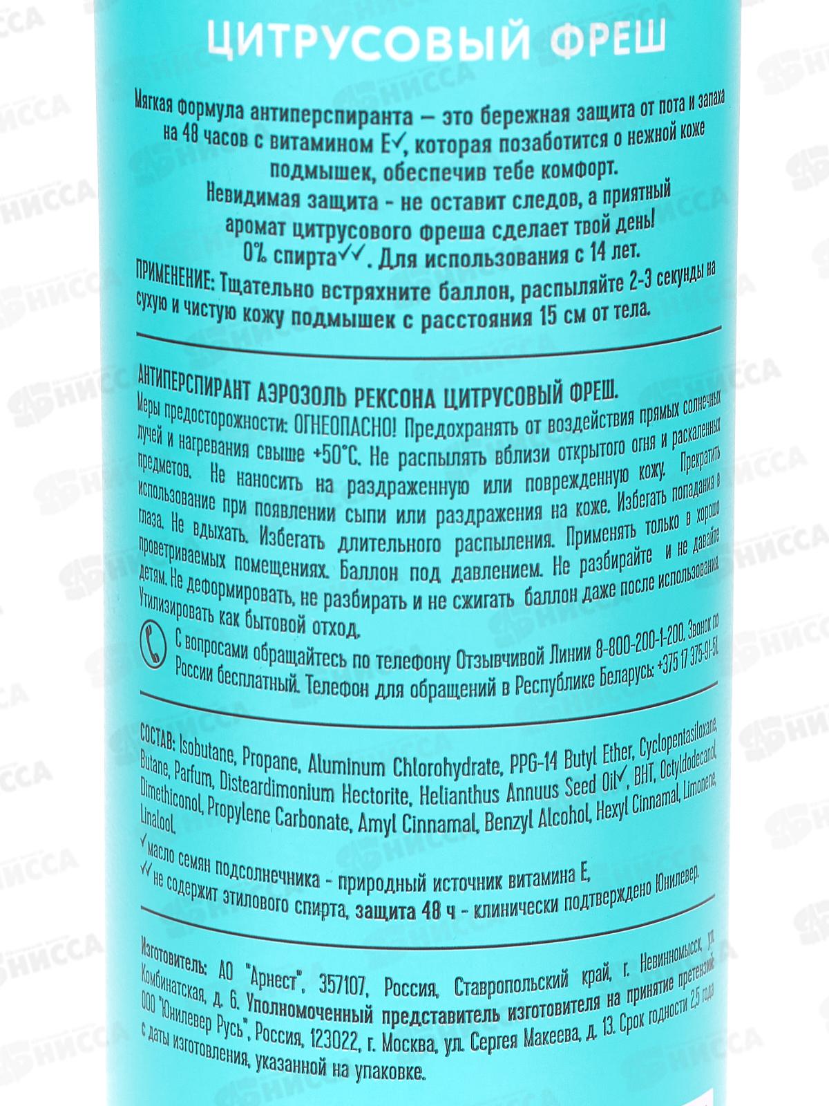 РЕКСОНА дезодорант спрей 150мл Цитрусовый фреш *6