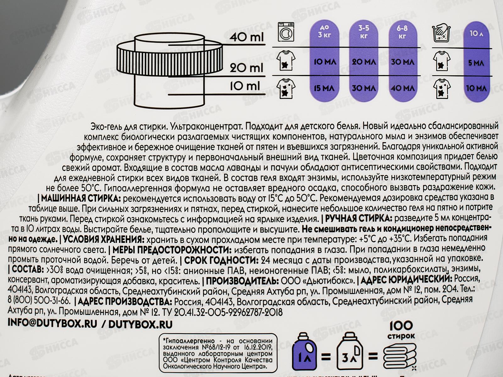 Dutybox Гель для стирки Ультраконцентрат Лаванда 1л, 5109