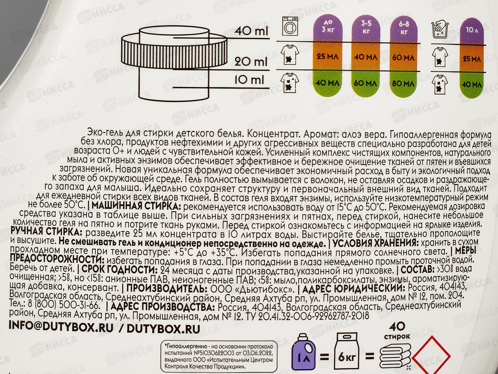 Dutybox Гель для стирки концентрат Детский "Алоэ вера" 1л, 5150