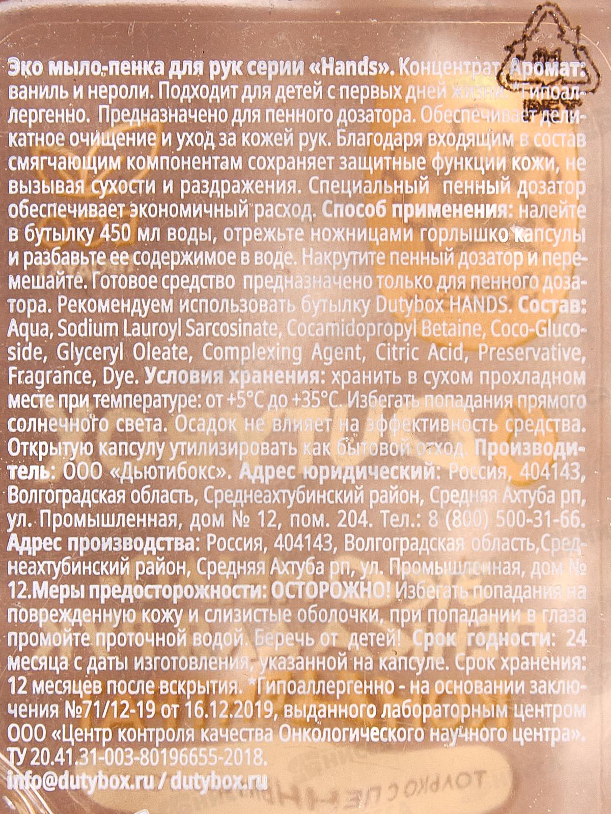 Dutybox Концентрат "Hands" Ваниль и нероли 50мл, эко мыло-пенка для рук, 1527
