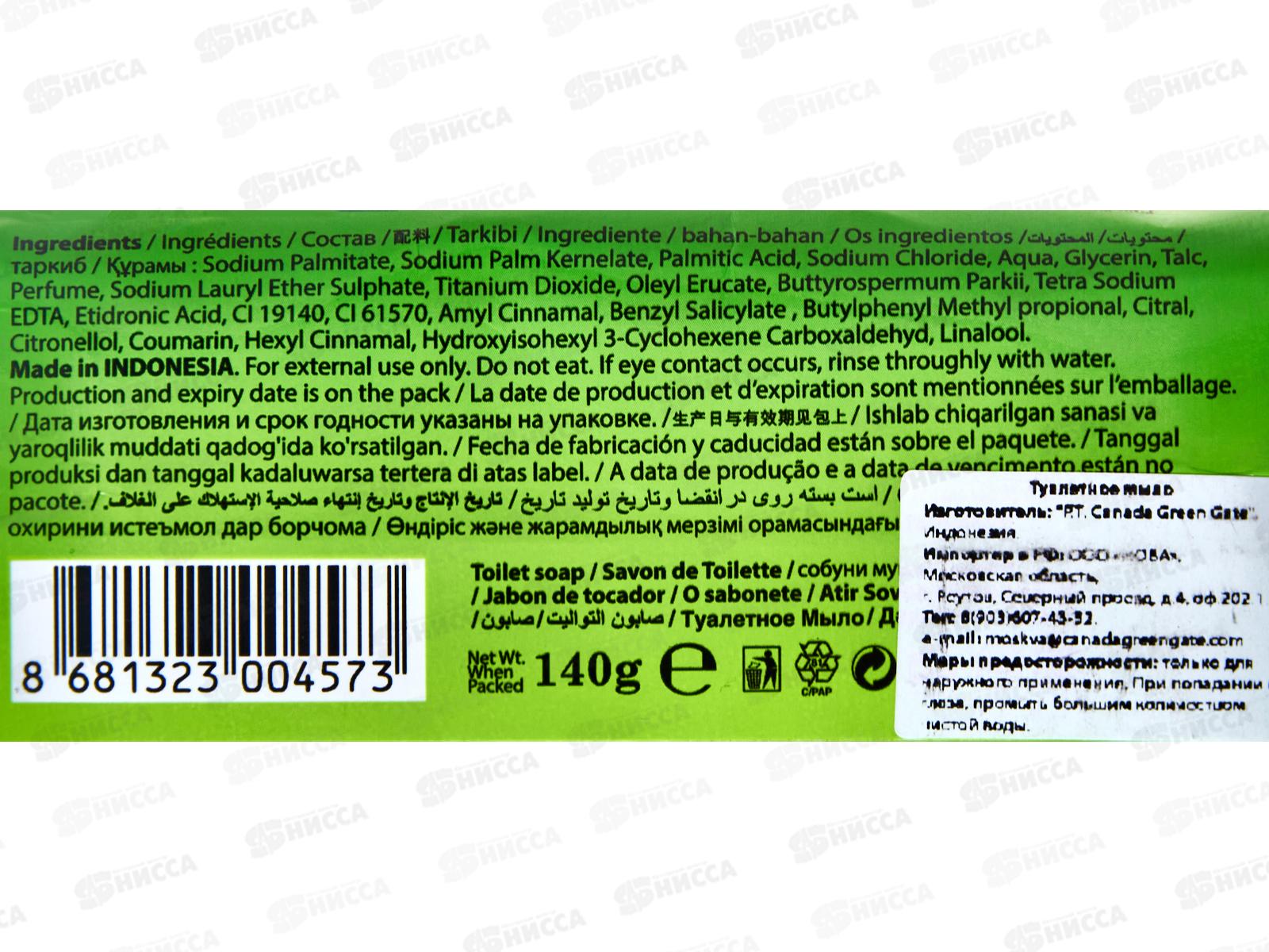 Состав: пальмитат натрия, пальмоядровое масло, пальмитиновая кислота, хлорид натрия, вода, глицерин, тальк, парфюмерная композиция, лаурилэфирсульфат натрия, диоксид титана, шерилэдукат, Buttyrospermum Parkii, тетранатрий ЭДТА, этидроновая кислота, Cl 19140, Cl 61570, амилциннамаль, бензилсалицилат, бутилфенилметилпропиональ, цитраль, цитронеллол, кумарин, гексилциннамаль, гидроксиизогексил 3-циклогексенкарбоксальдегид, линалоол.