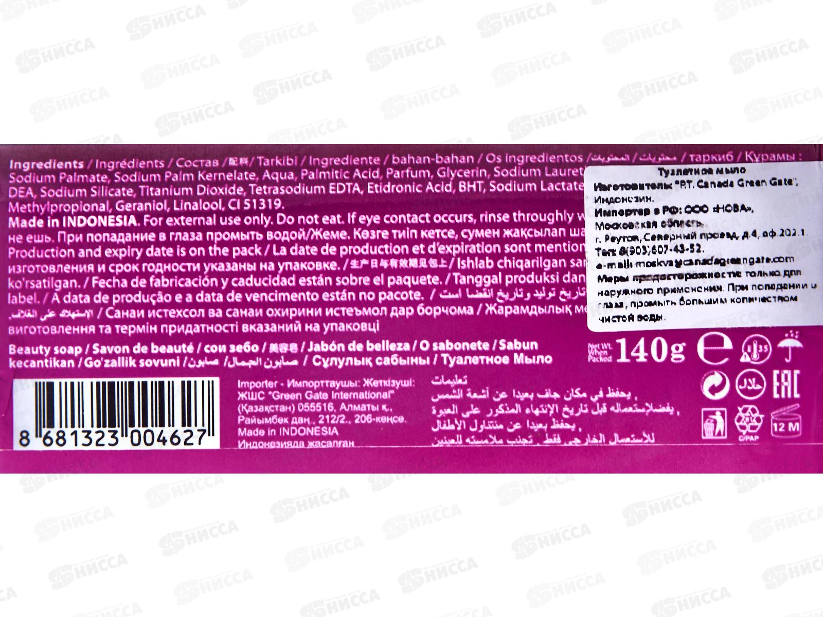 Состав: пальмитат натрия, пальмоядровое масло, пальмитиновая кислота, хлорид натрия, вода, глицерин, тальк, парфюмерная композиция, лаурилэфирсульфат натрия, диоксид титана, шерилэдукат, Buttyrospermum Parkii, тетранатрий ЭДТА, этидроновая кислота, Cl 19140, Cl 61570, амилциннамаль, бензилсалицилат, бутилфенилметилпропиональ, цитраль, цитронеллол, кумарин, гексилциннамаль, гидроксиизогексил 3-циклогексенкарбоксальдегид, линалоол.