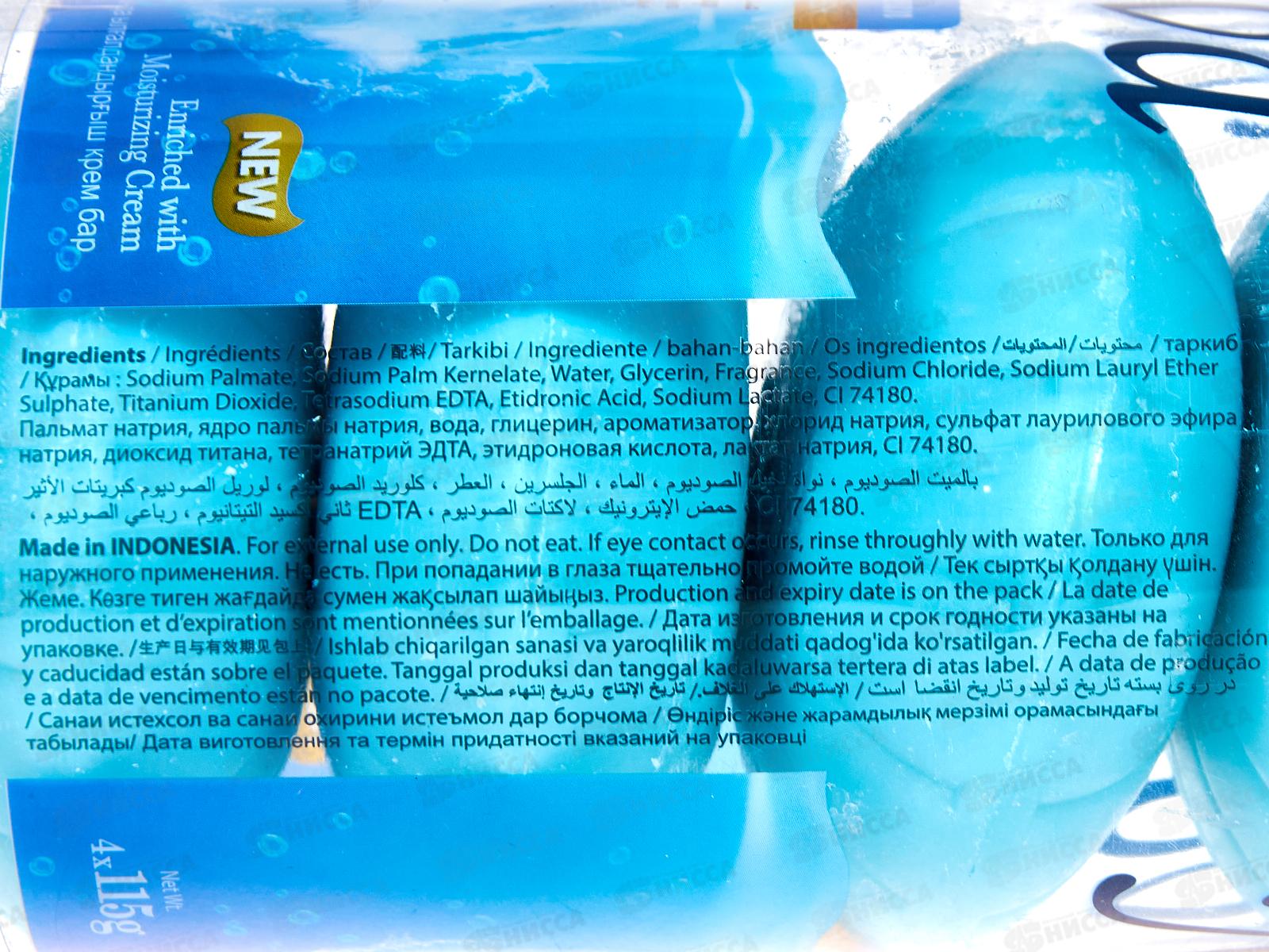 Состав: пальмат натрия, ядро пальмы натрия, вода, глицерин, ароматизатор, хлорид натрия, сульфат лаурилового эфира натрия, диоксид титана, тетранатрий ЭДТА, этидроновая кислота, лактат натрия, Cl 74180.