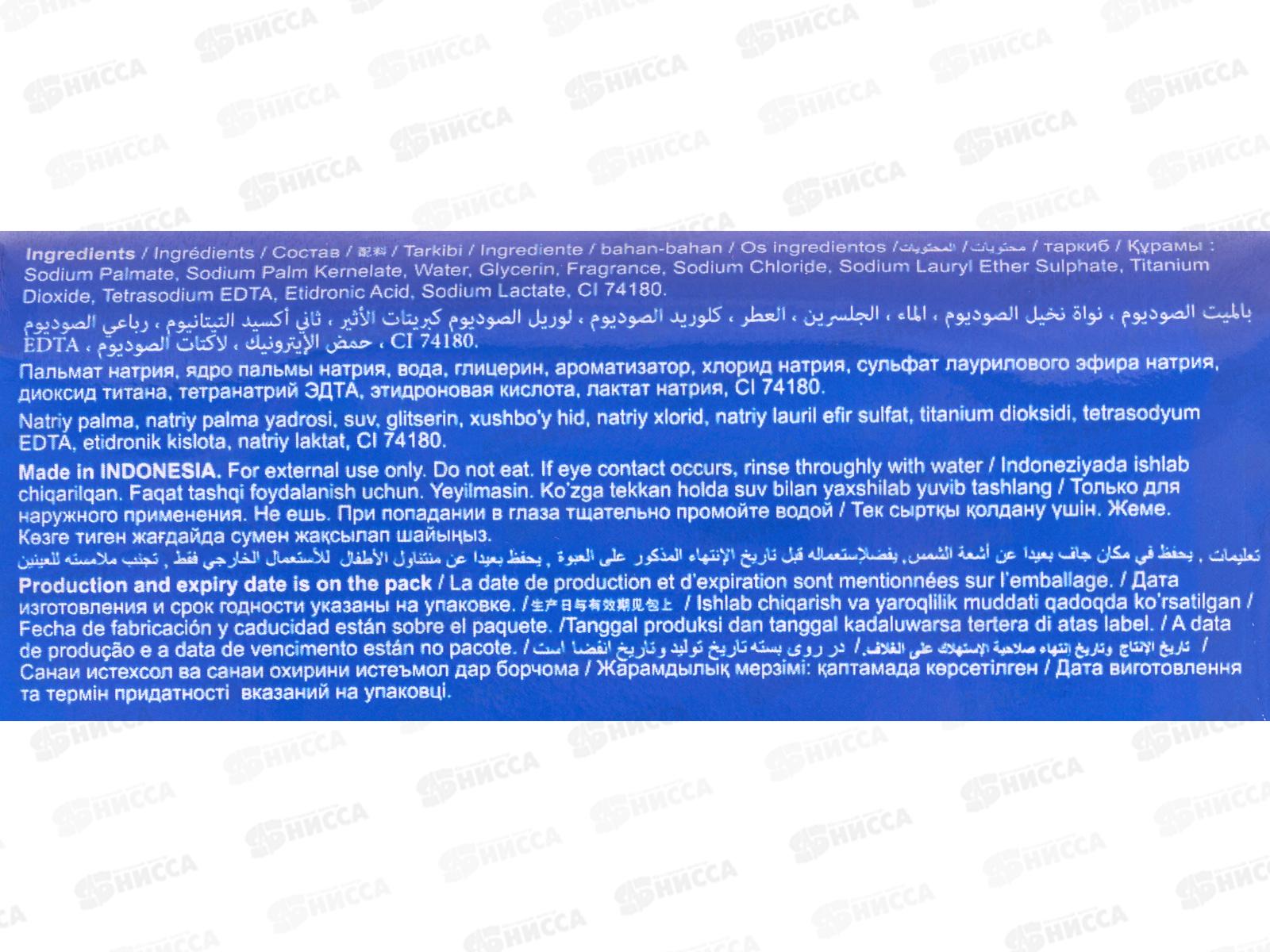 Состав: пальмат натрия, пальмовый кернелат натрия, вода, глицерин, ароматизаторы, хлорид натрия, лауриловый эфир сульфат натрия, диоксид титана, тетранатрий ЭДТА, этидроновая кислота, лактат натрия, CI 74180