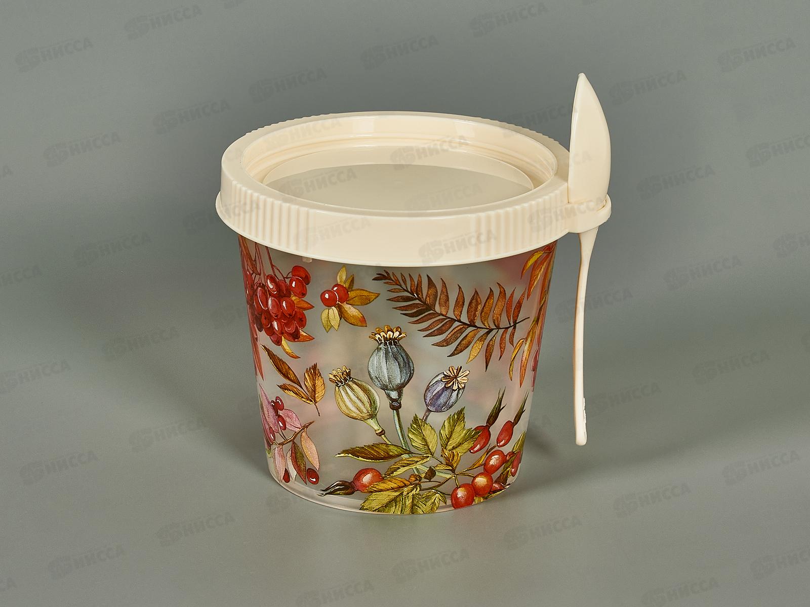 Код:562888; Контейнер д/завтрака 450мл с ложкой с декором Св-беж 222142025/01 *12