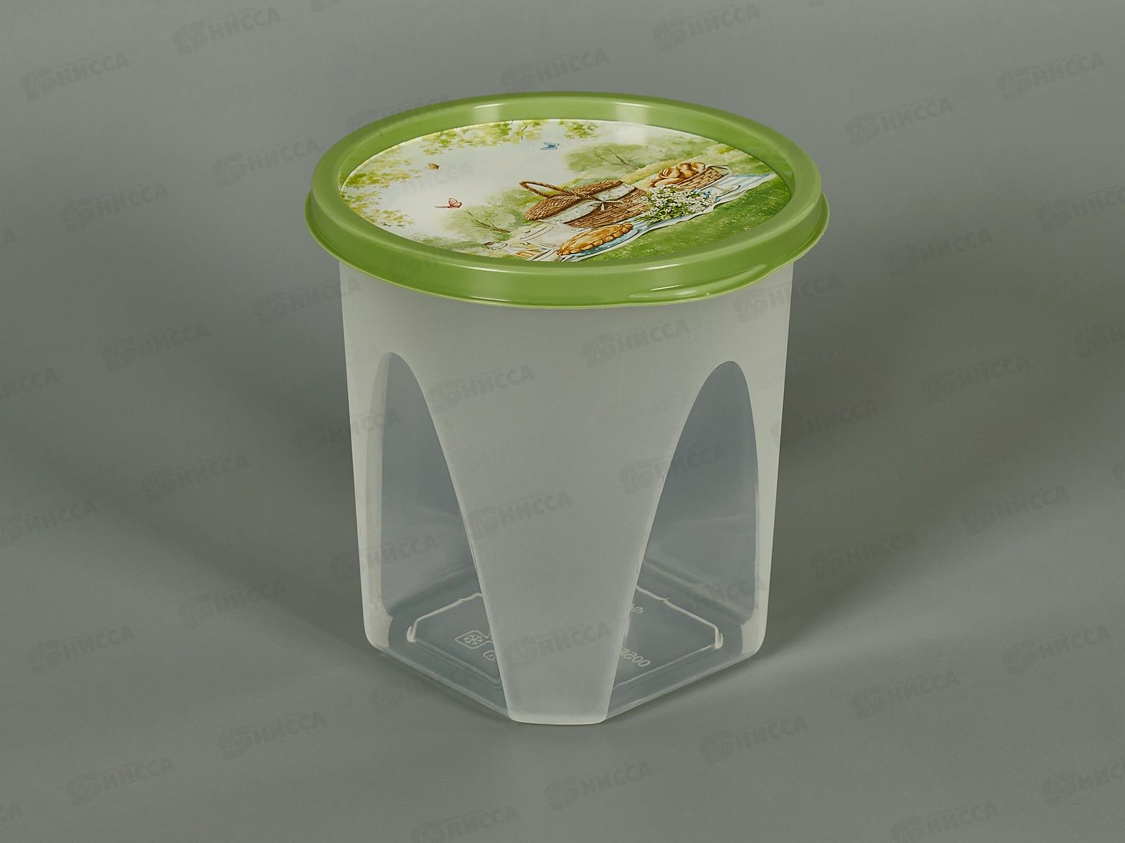 Код:567215; Контейнер д/прод. 0,6л с декором круглый Зеленый 222125918/08 *24