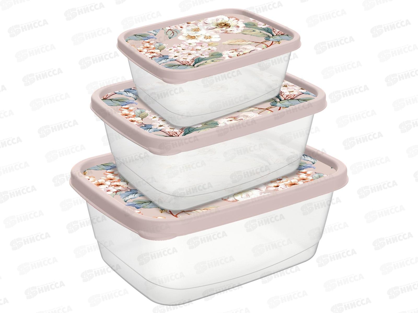 Код:484647; Контейнер для продуктов 3шт с декором бежевый 221160827/06 *24