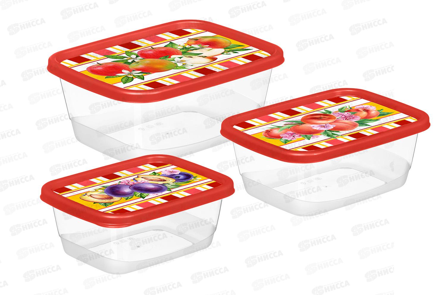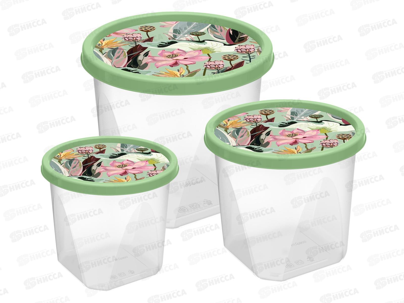 Код:534710; Контейнер для продуктов 3шт с декором зеленый 222133418/08 *16
