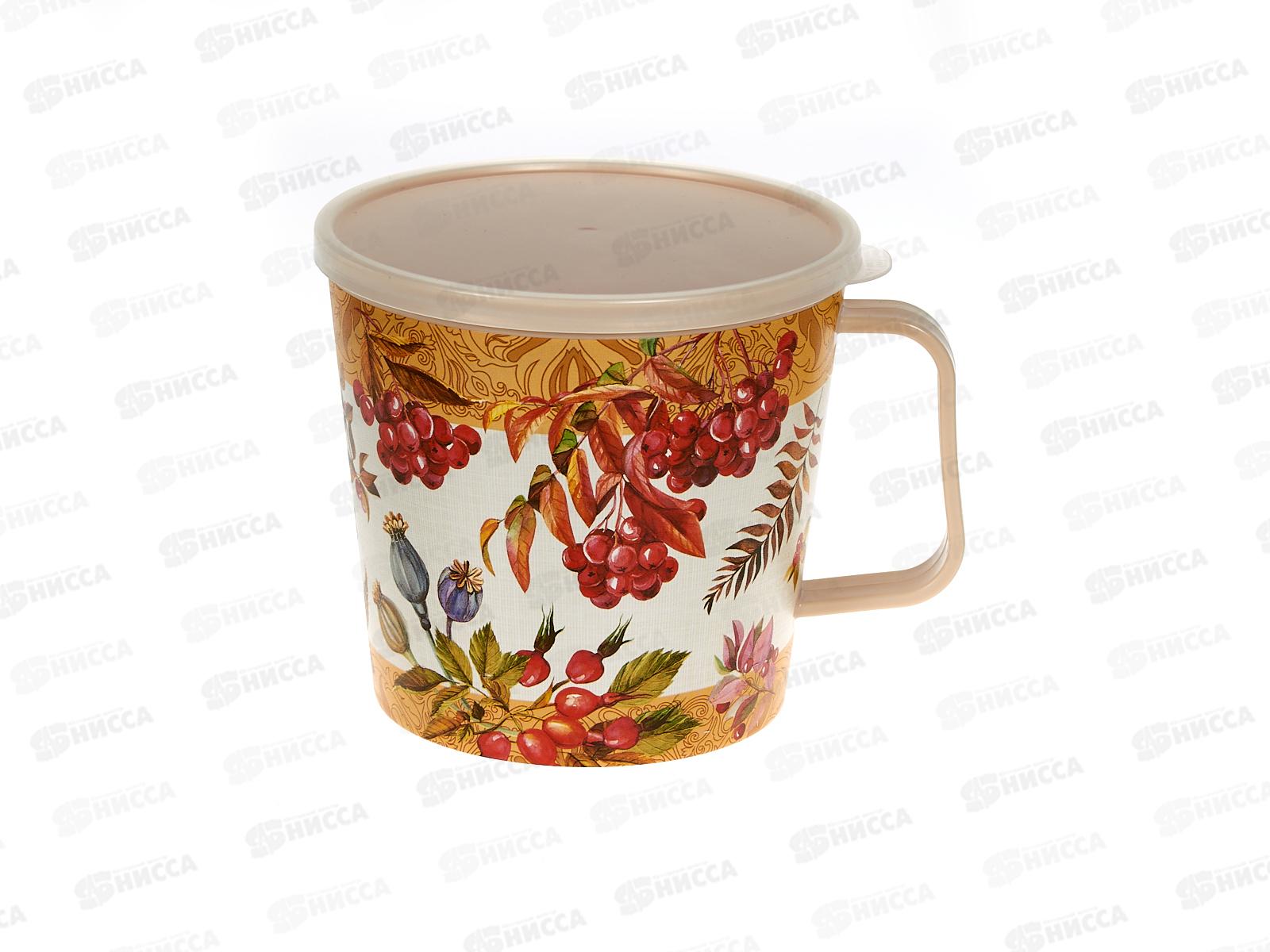 Код:447200; Контейнер-кружка 0,75л с крышкой с декором светло-бежевый 221130725/01*24