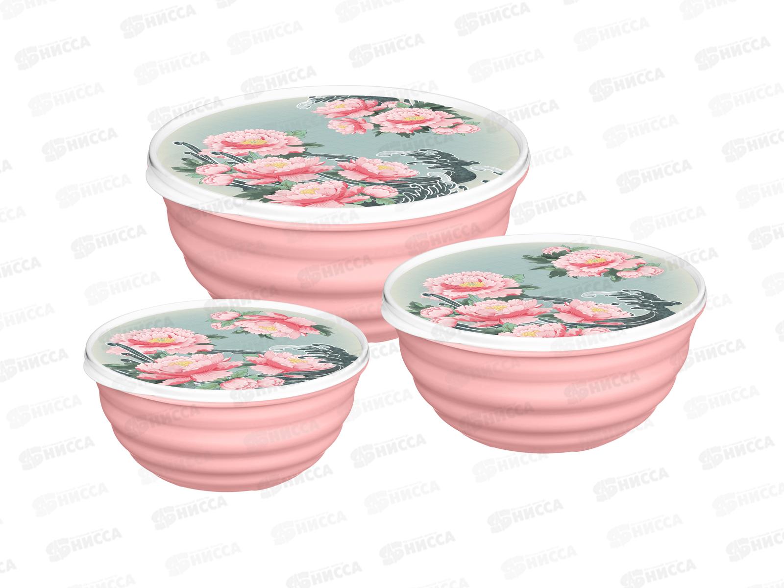 Код:601569; Набор мисок "Latina" 3шт с/кр (1,1л+2,1л+3,2л) "Сад пионов" розовый 223152508/04 *10