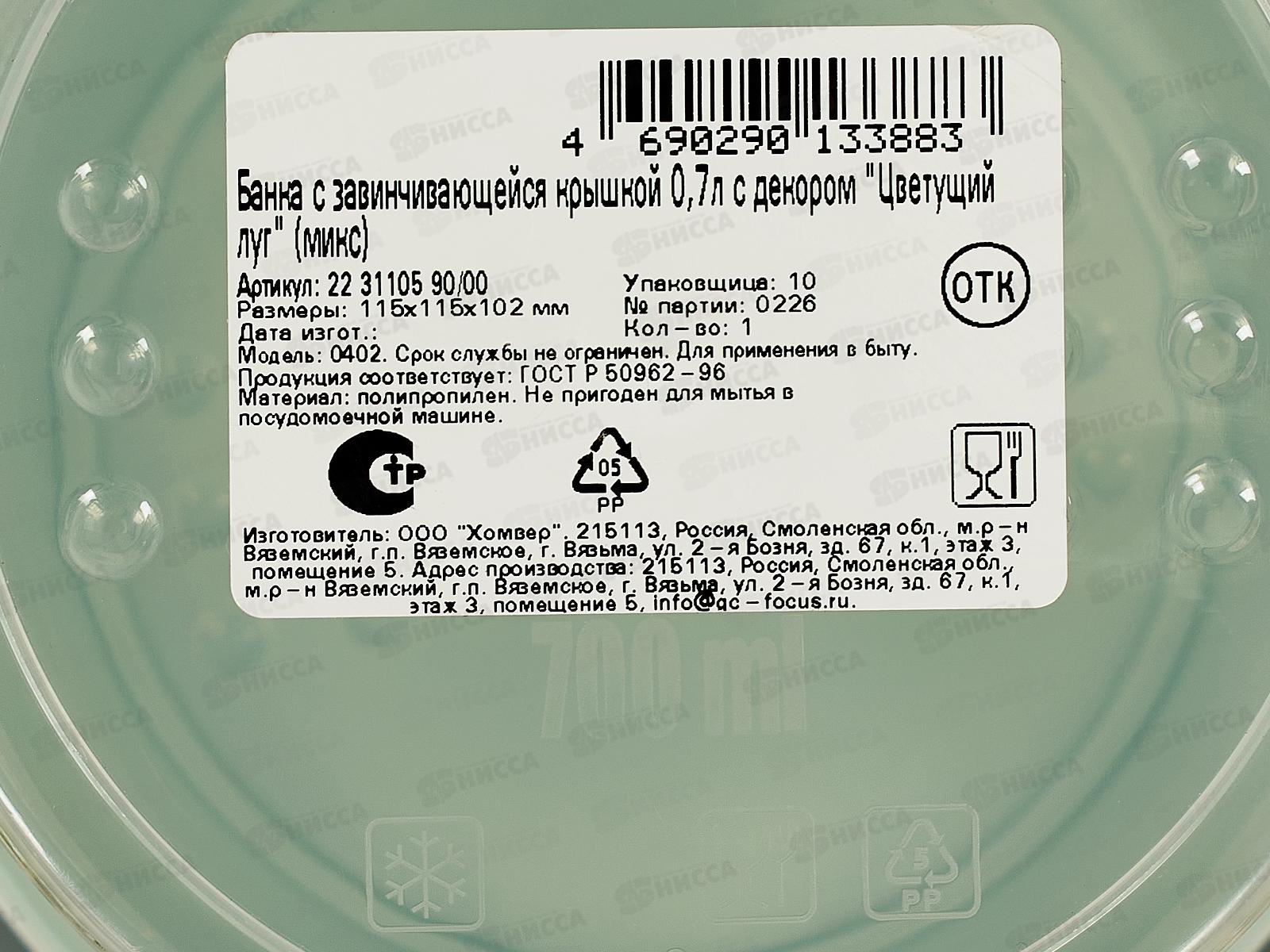 Банка 0,7л "Цветущий луг" с/кр микс 223110590/00 *12