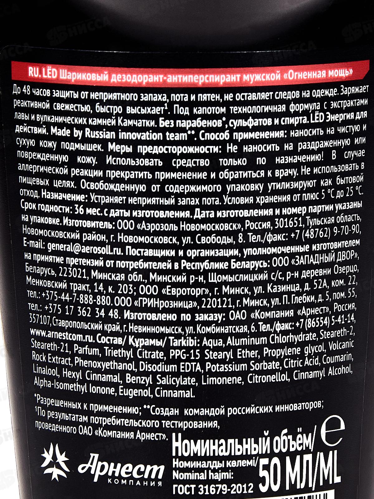 LЁD дезодорант-антиперспирант шариковый мужской Огненная мощь 50мл