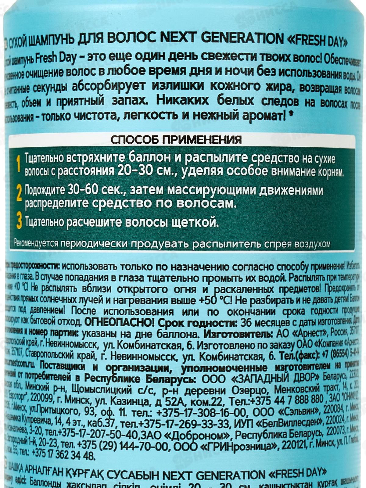 Next Generation Сухой шампунь для волос Fresh Day 150мл *12