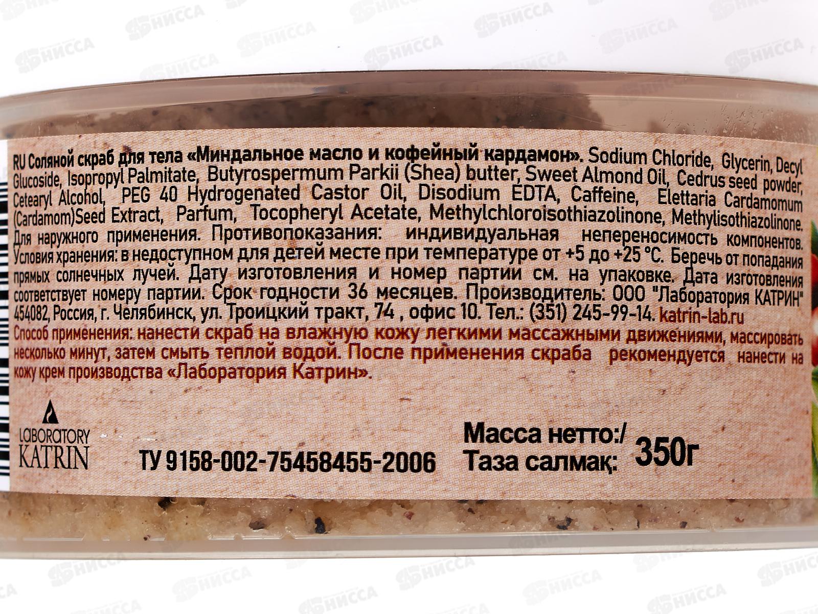 Скраб для тела соль+сахар с маслами 350г Кофейный кардамон и минд мас *12