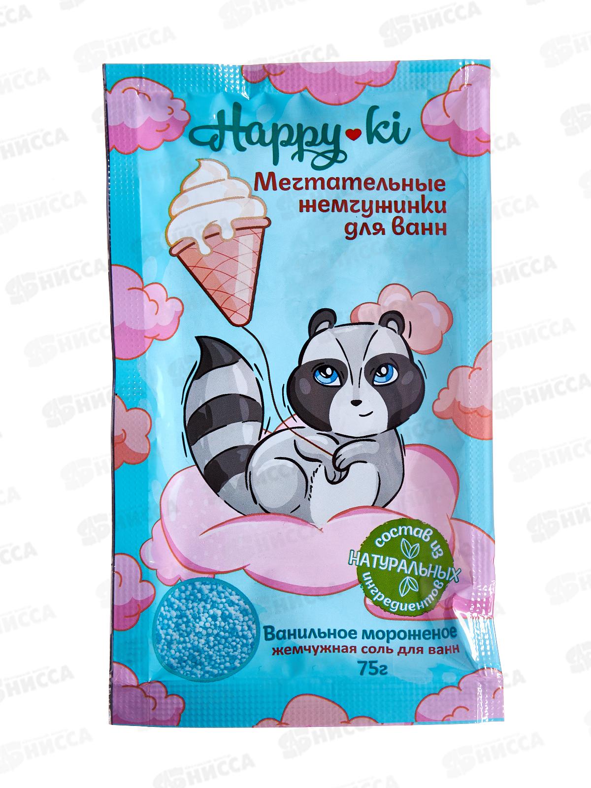 Код:556028; Соль для ванн 75г Happyki Ванильное мороженое *24