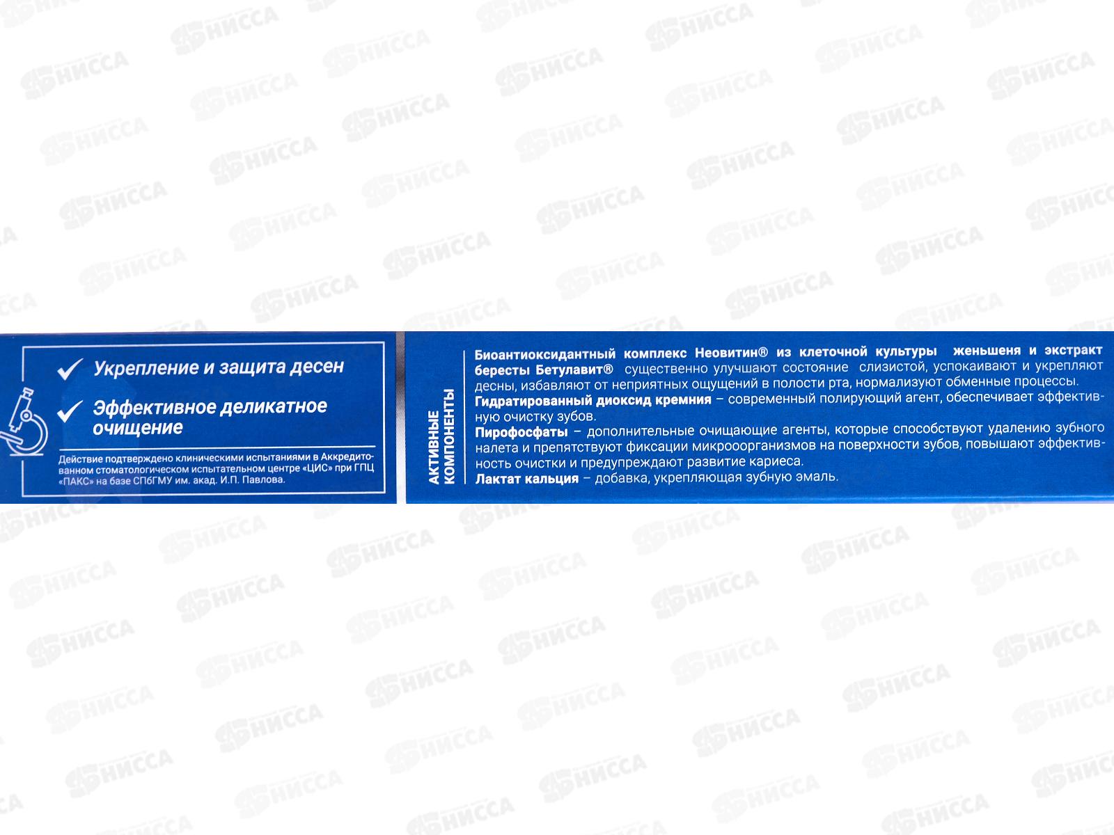 Зубная паста имеет в своем составе высокоэффективные и противовоспалительные комплексы. Специальные добавки повышают эффективность очищения зубного налета и предупреждают развитие кариеса. Состав: Вода очищенная, сорбитол, гидратированная окись кремния, глицерин, экстракт бересты Бетулавит, натрия лаурилсульфат, ароматизаторы, биоантиоксидантный комплекс Неовитин®, тетракалия пирофосфат, тетранатрия пирофосфат, диоксид титана, лактат кальция, сахарин, натрия карбоксиметилцеллюлоза, метилпарабен, этилпарабен, пропиленгликоль, CI 42090, лимонен