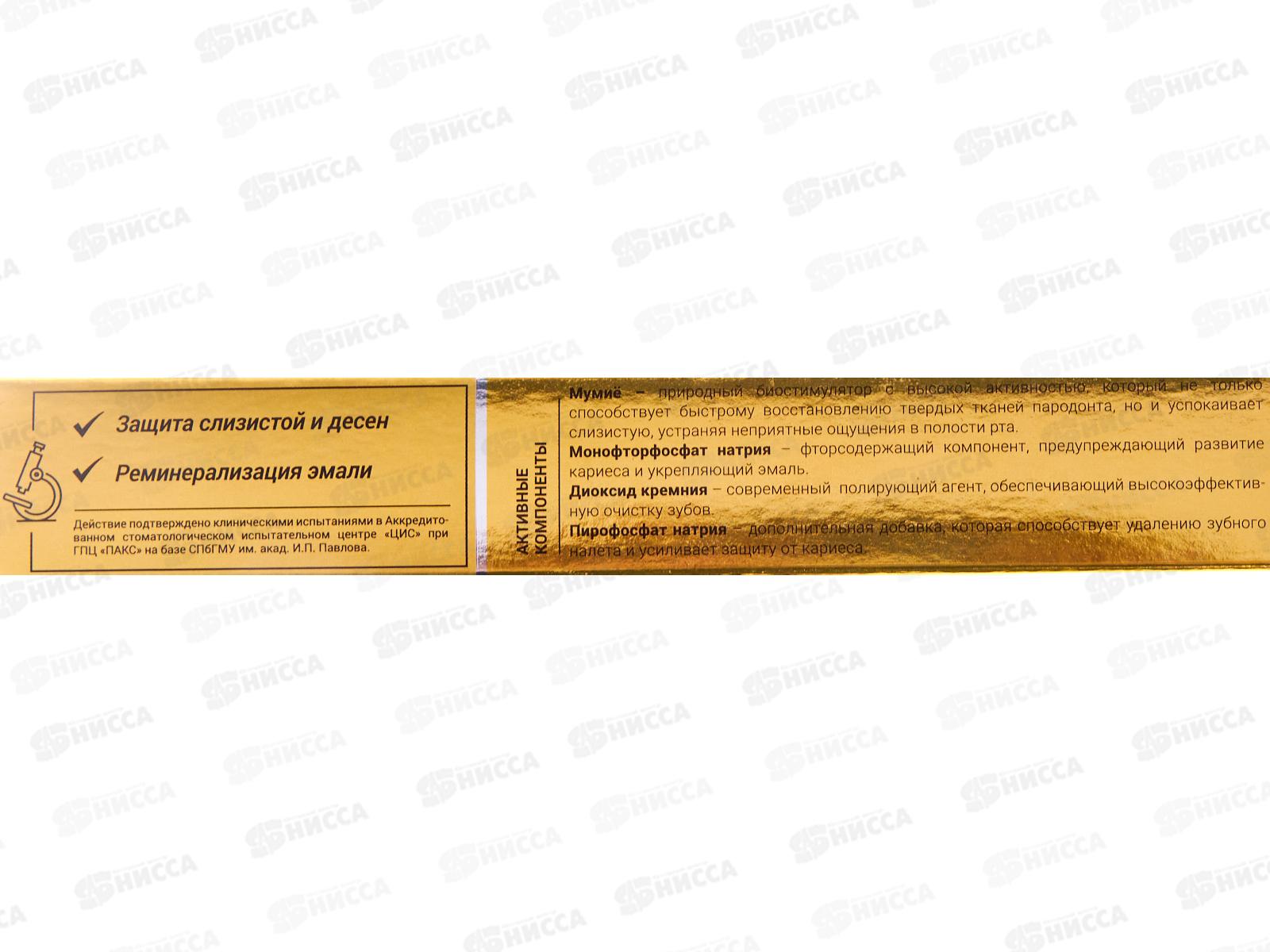 Противовоспалительная зубная паста с мумие и фтором обеспечивает комплексный уход за всей полостью рта. Благодаря мумие паста быстро устраняет первые симптомы пародонтита, зуд и жжение в полости рта, улучшает минеральный обмен и ускоряет заживление тканей, успокаивает слизистую. Состав: Вода, Сорбит, Гидратированный диоксид кремния, Глицерин, Тетранатриевый пирофосфат, лаурилсульфат натрия, Ароматизаторы, Мумие (минеральная смола), Метилпарабен, Этилпарабен, Пропиленгликоль, монофторфосфат натрия, Целлюлозная камедь, Диоксид титана, Сахарин натрия, Лимонен, Линалоол, Эвгенол, Цитраль, Бензиловый спирт.