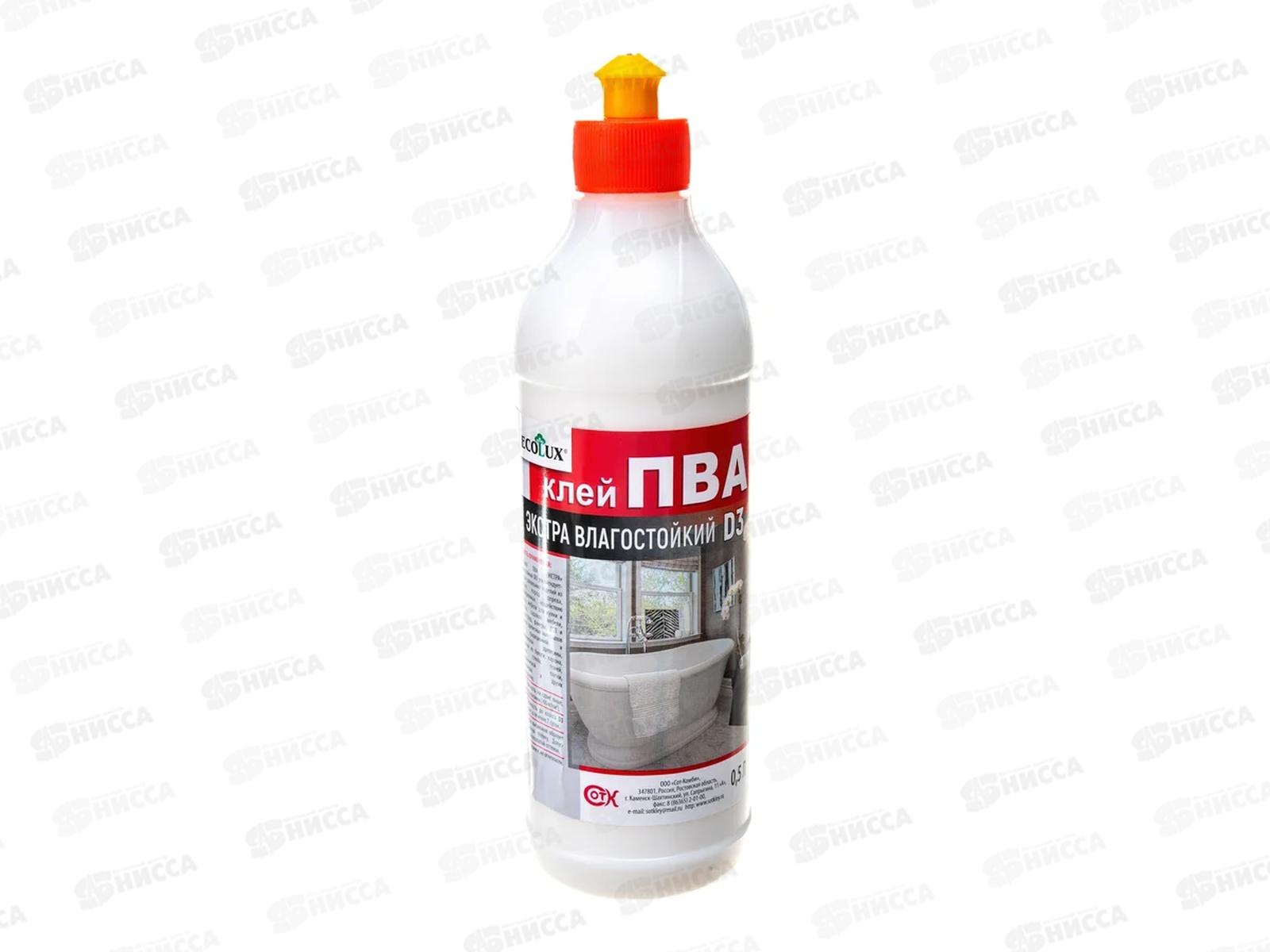 Код:569443; Клей ПВА ECОLUX экстра влагостойкий 0,5л *24