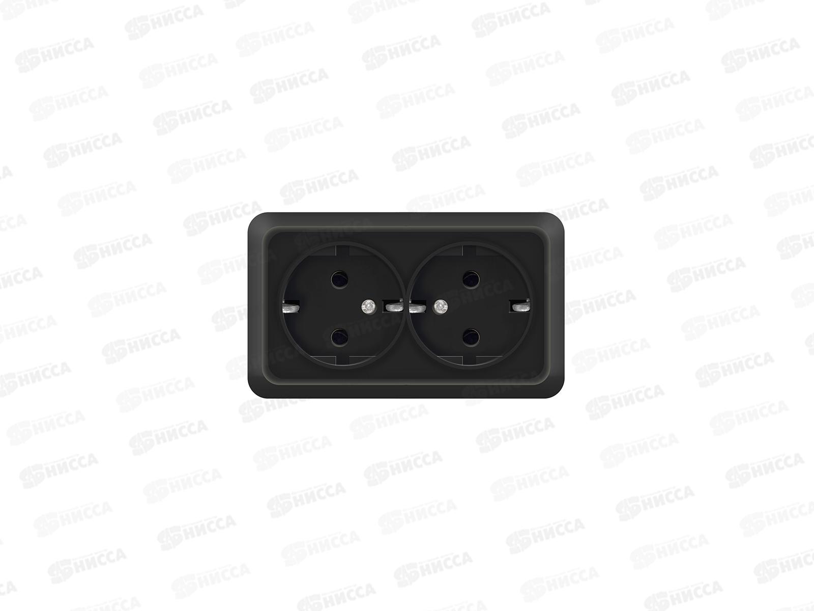 Код:564729; Розетка ОЛИМП 2-мес. о/у, с/з, 16А, 220В черная,керамика, 2216*10