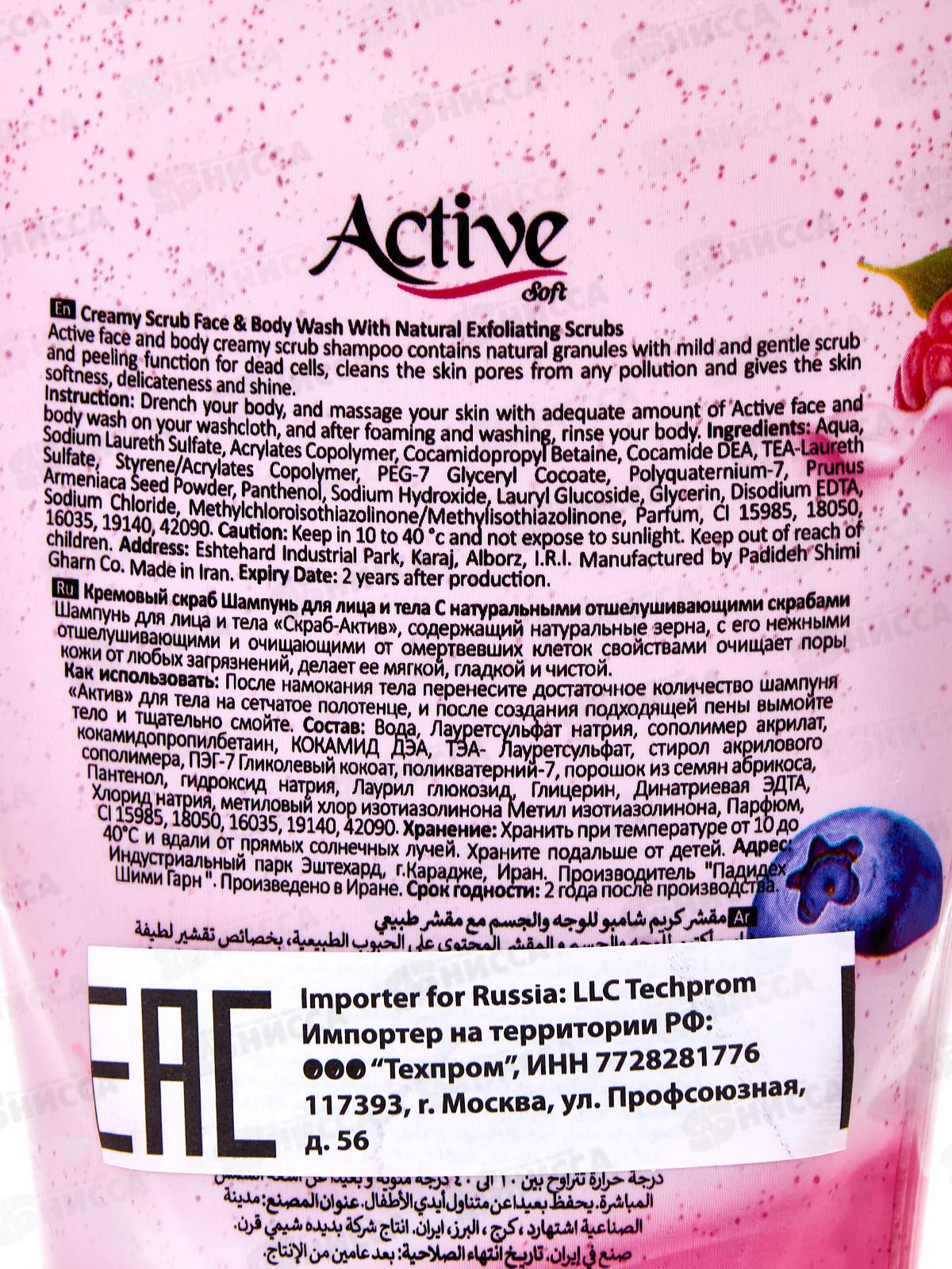 Active Гель-скраб кремовый для душа Клубника со сливками 400мл *12