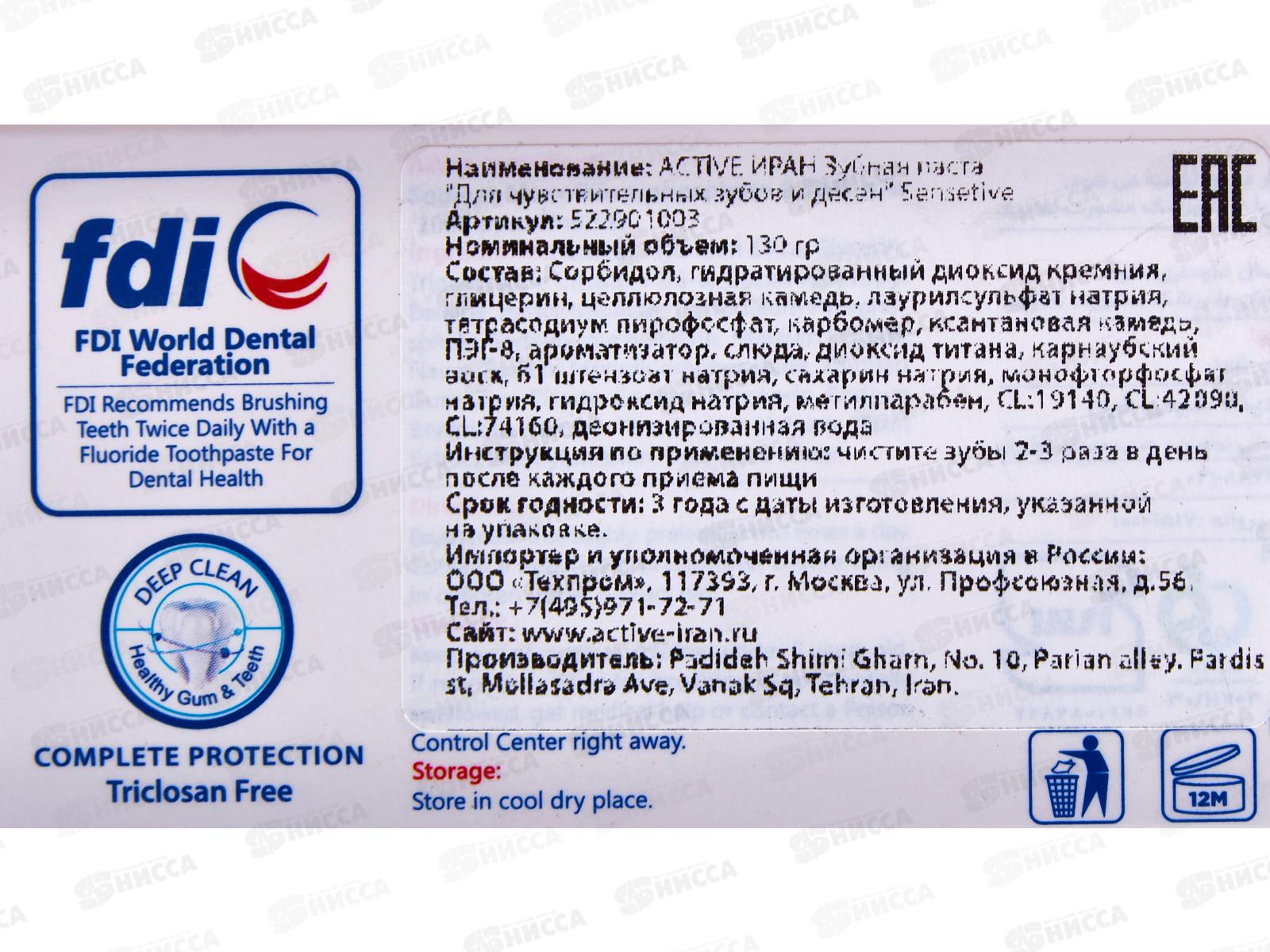 Active Зубная паста Для чувствительных зубов Sensetive без параб 130г *48
