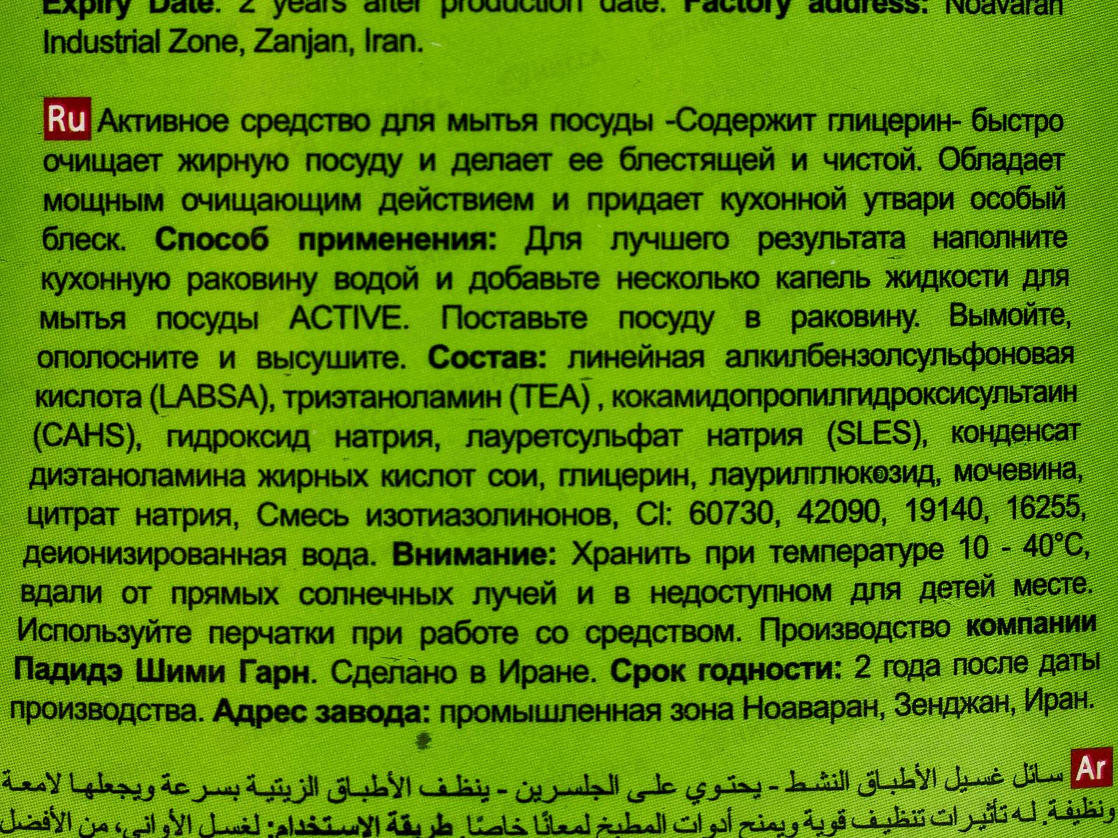 Концентрированный гель для мытья посуды. Содержит глицерин, который быстро удаляет жир с посуды и делает её блестящей. Гель полностью смывается водой и подходит для мытья детской посуды, бутылочек и игрушек. Устраняет жир и запахи с посуды даже в холодной воде. Описание: линейная алкилбензолсульфоновая кислота (LABSA), триэтаноламин (ТЕА), кокамидопропилгидроксисультаин (CAHS), гидроксид натрия, лауретсульфат натрия (SLES), конденсат диэтаноламина жирных кислот сои, глицерин, лаурилглюкозид. мочевина, цитрат натрия, смесь изотиазолинонов, Сі: 60730, в42090, 19140, 16255, деионизированная вода.