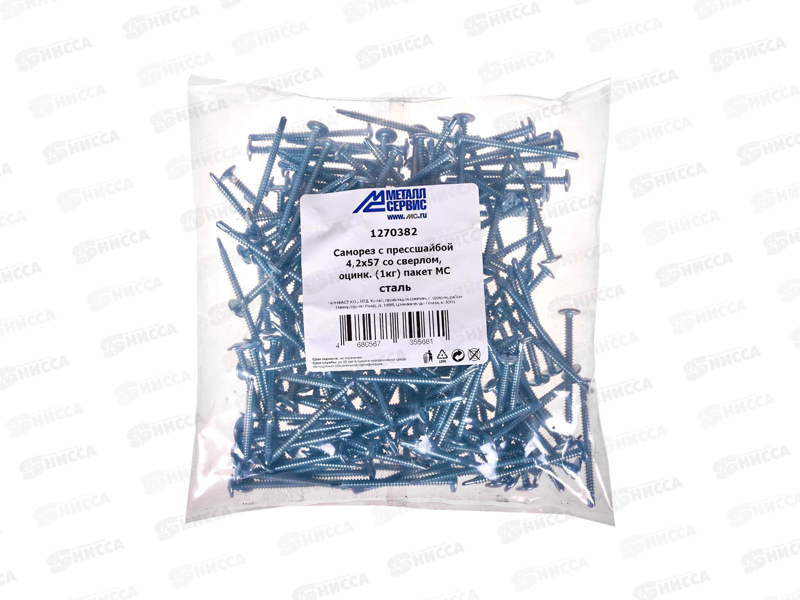 Саморез с прессшайбой 4.2*57 (1кг) со сверлом, пакет *10