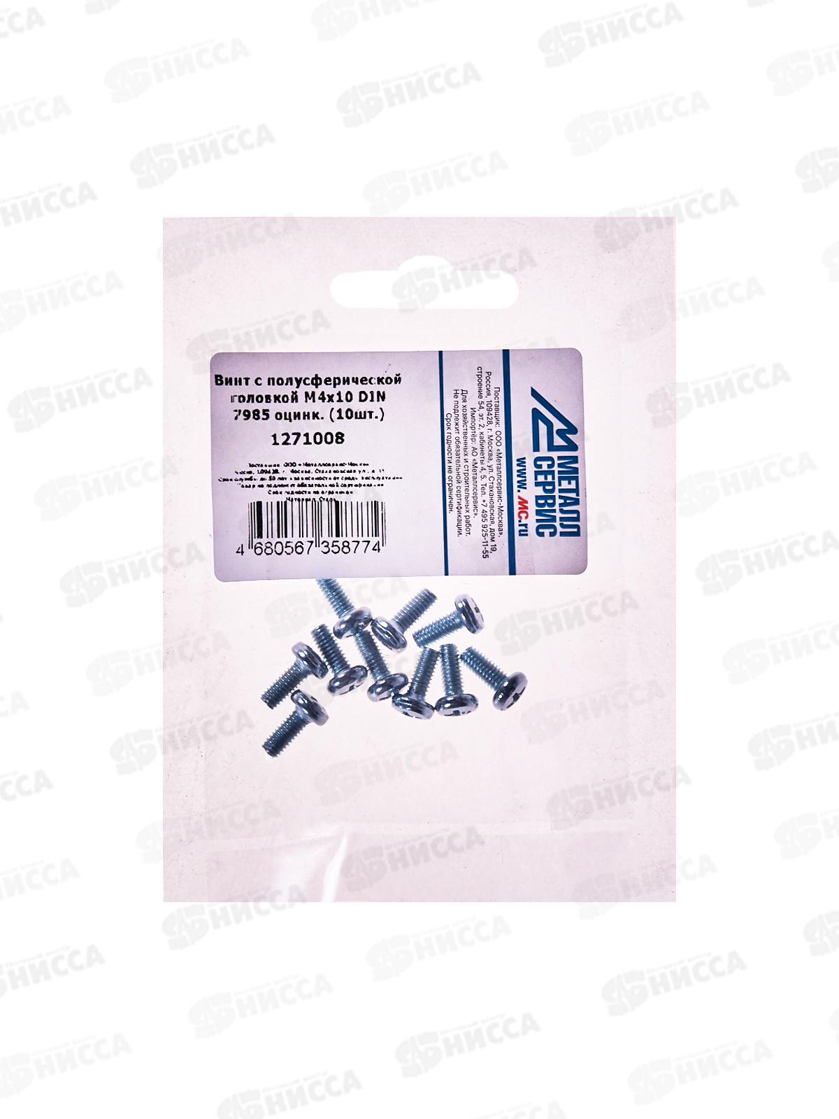 Код:559973; Винт с полусферической головкой M4x10 DIN7985 оцинк. (10шт) *10