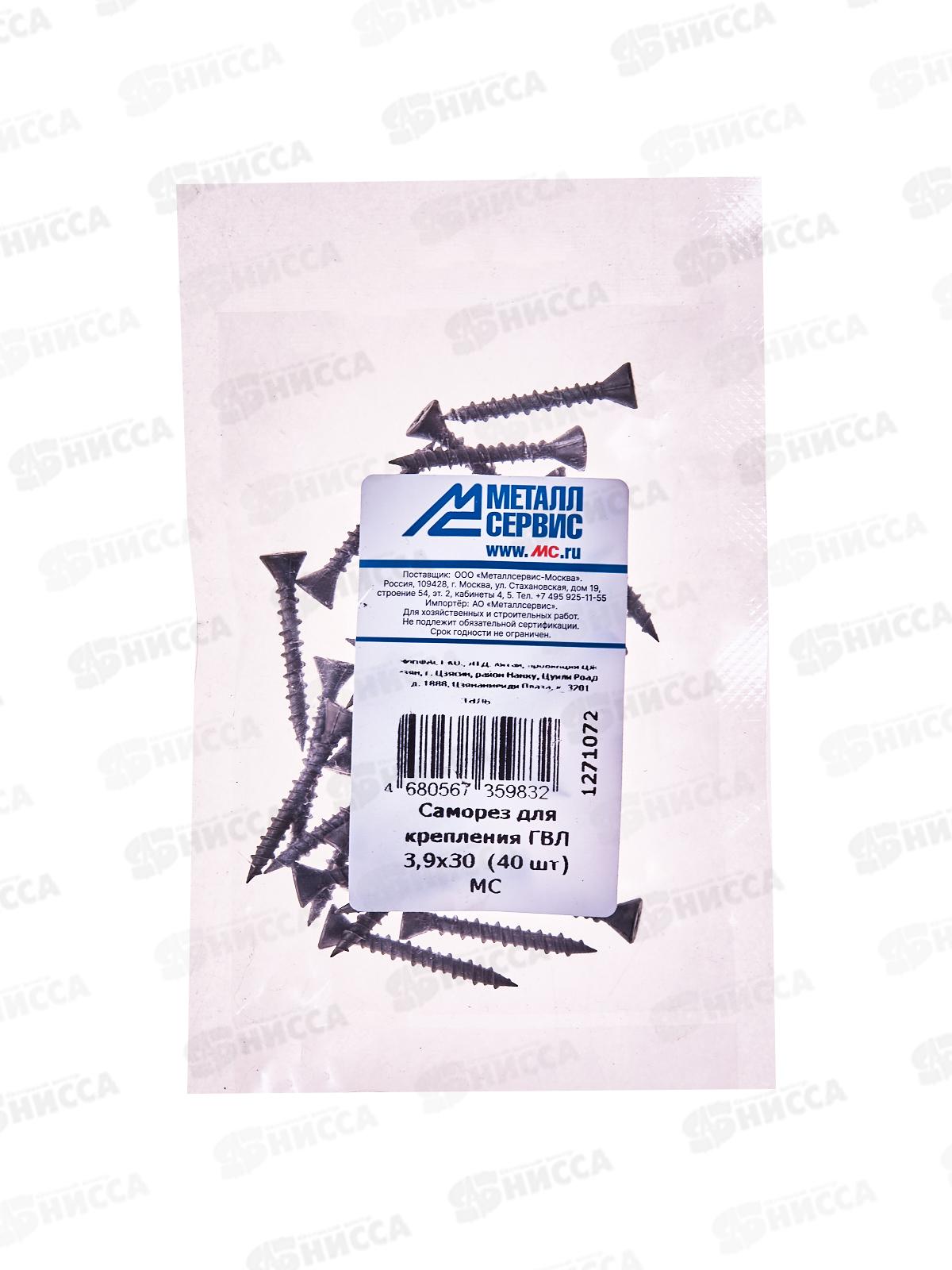 Код:560016; Саморез для крепления ГВЛ 3,9*30 (40шт) *10