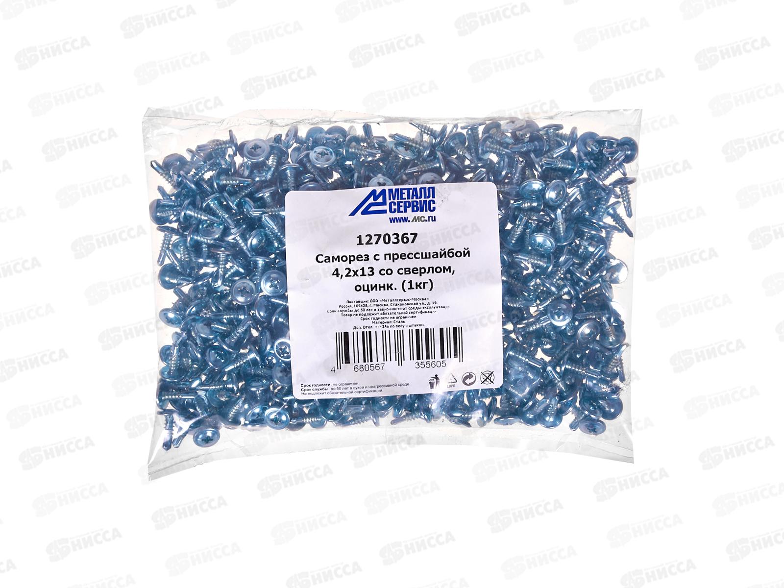 Код:587541; Саморез с прессшайбой 4.2*13 (1кг) со сверлом, пакет *10