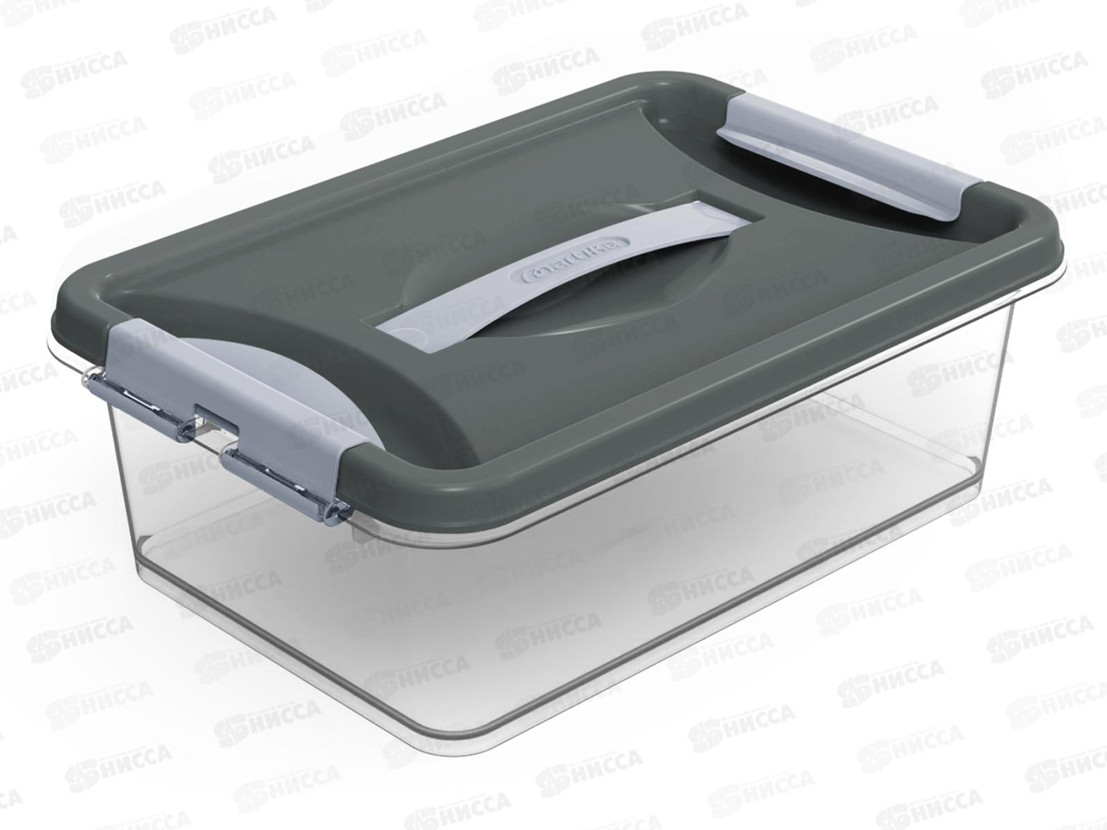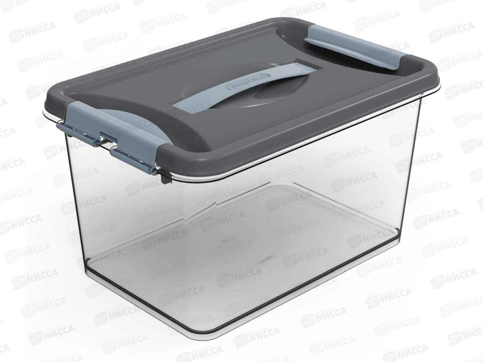 Код:523308; Контейнер Клик 8л с защелками и ручкой Темно-серый С273ТСер