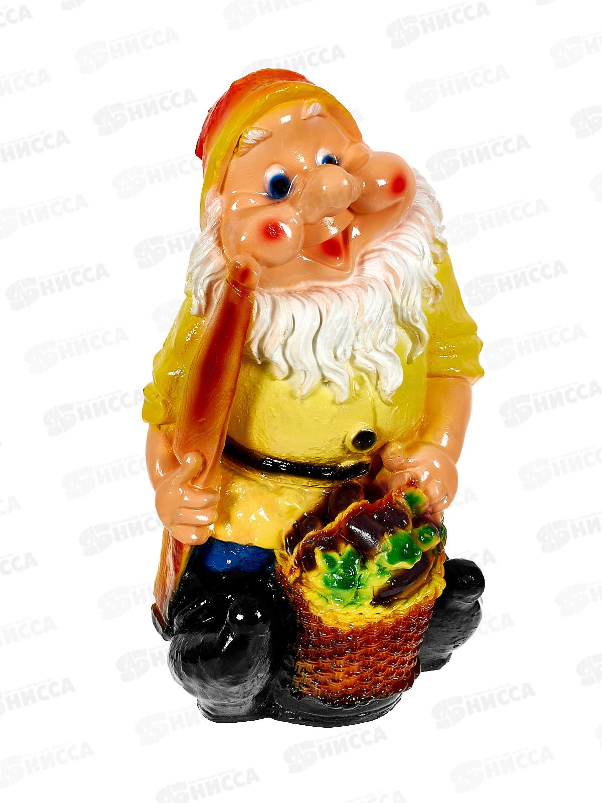 Код:560609; Фигура садовая из гипса "Гном с фруктами" (410*270мм) арт.130